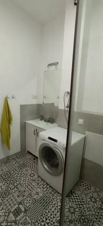 Na powierzchnię 43,26 m2, składają się : pokój z aneksem kuchennym 26,11m2, sypialnia 8,14 m2, przedpokój 3,99 m2, łazienka wraz z toaletą 5 m2.