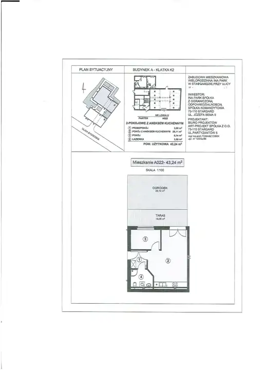- Charakterystyka mieszkania 43.26 m2, 2 pokoje