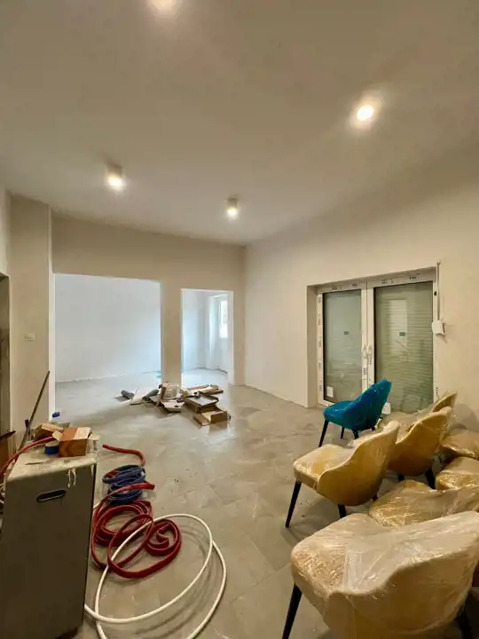 1. Lokal nr 1 - o łącznej powierzchni ok 173 m2 składa się z nowoczesnej sali ( ok 104 m2) posiadający wejście od głównej ulicy z zapleczem i przestronnym WC. Lokal jest po generalnym remoncie. Sala główna z czterema przestronnymi oknami (o rozmiarach 2,05 X 1,37). Na wszystkich oknach i drzwiach zainstalowano żaluzje antywłamaniowe.