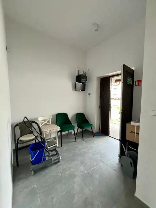2. Drugi lokal o powierzchni ok 54 m2 składa się również z sali głównej z wejściem dla klientów od strony ulicy Chrobrego z zapleczem oraz pomieszczeniami socjalnymi i WC . Lokal jest przystosowany również pod usługi gastronomiczne z okienkiem wydawczym i dostępem do wody. W lokalu znajdują się też dwa wejścia. Jedno dla klientów od strony ulicy, drugie od strony zaplecza.
