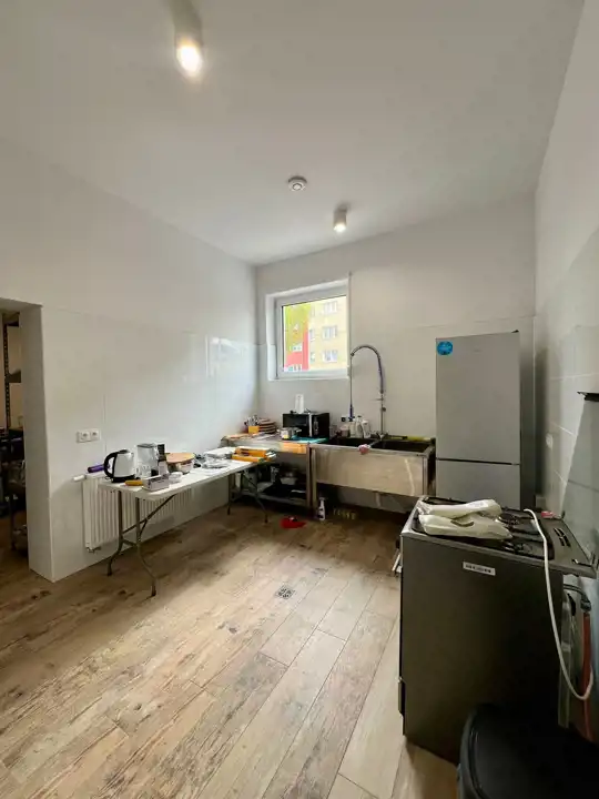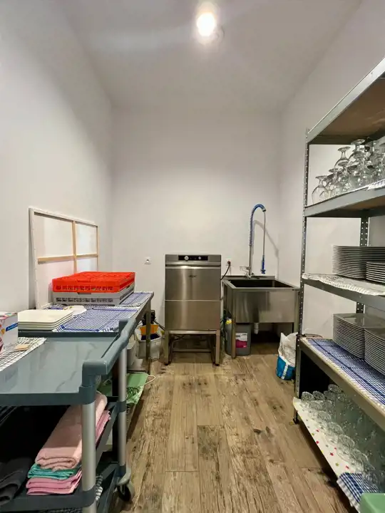 Obecnie lokal jest przystosowany pod usługi gastronomiczne. Na zapleczu kuchennym znajdują się dwa pomieszczenia. Jedno pełni funkcję zmywaka, drugie stanowi część kuchenną z odrębnym zapleczem socjalnym, WC oraz drugim wejściem dla personelu wykorzystywanym również na dostawy. Na sali nowa klimatyzacja Kaisai eco.