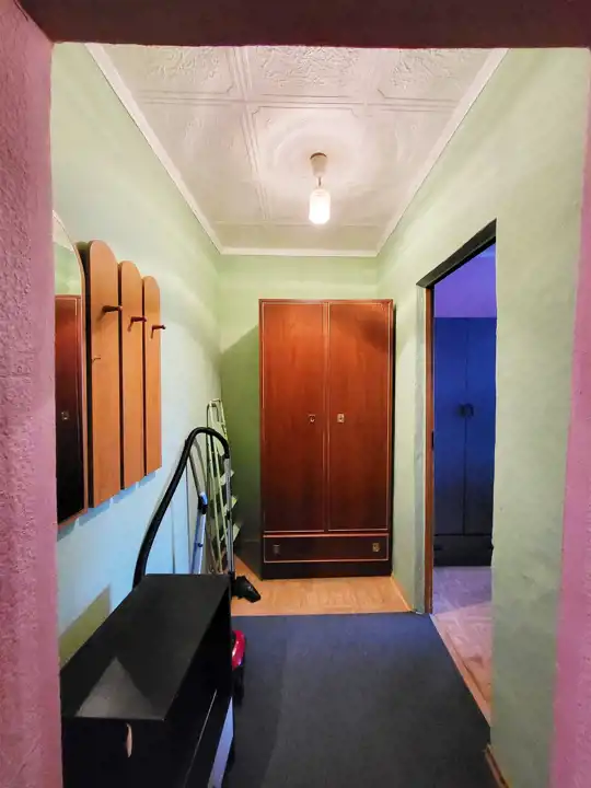 - Składa się z 3 pokoi, kuchni, łazienki, WC oraz dwóch przedpokoi