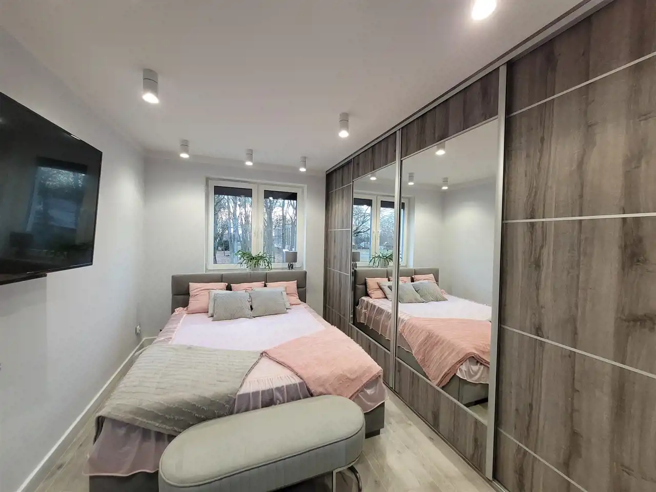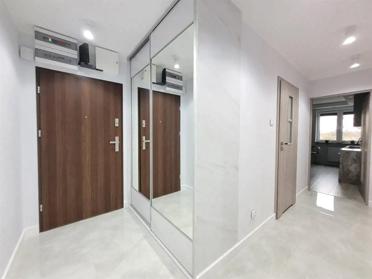 Mieszkanie robione pod siebie. Wykończone z dobrych materiałów. Aneks kuchenny wyposażony w szafki kuchenne, płytę indukcyjną, zmywarkę, piekarnik oraz okap. W sypialni i korytarzu zamontowane duże szafy na wymiar. Łazienka w ładnych kaflach z łazienką i WC. We wszystkich oknach zamontowane rolety antywłamaniowe.