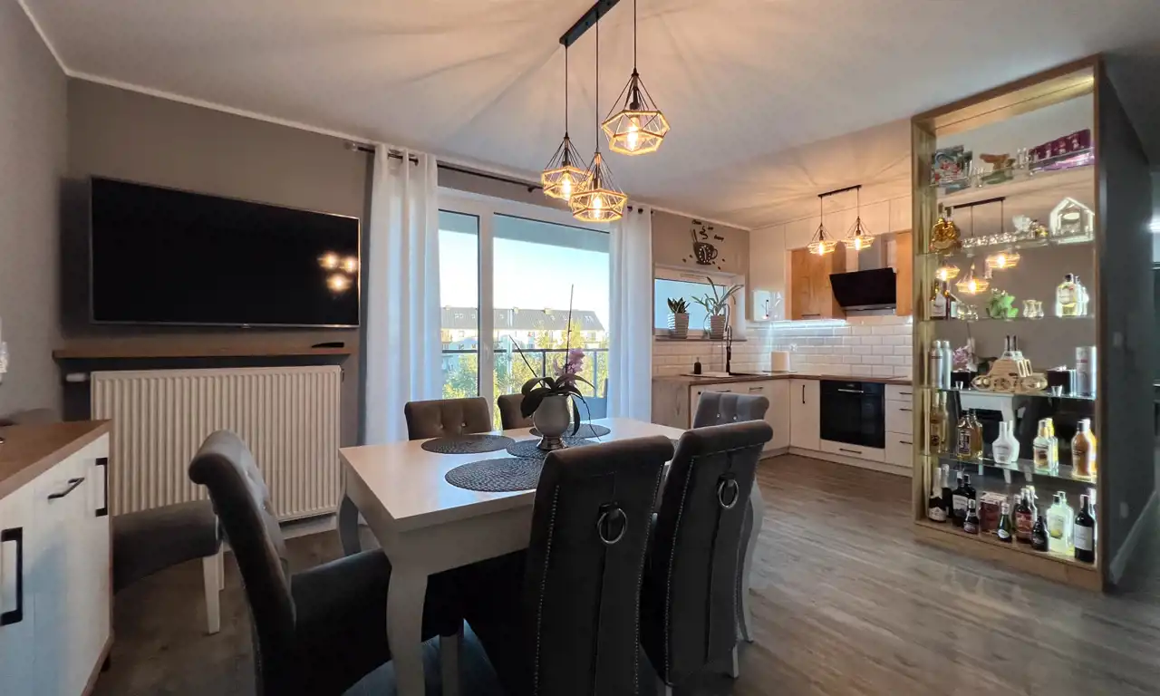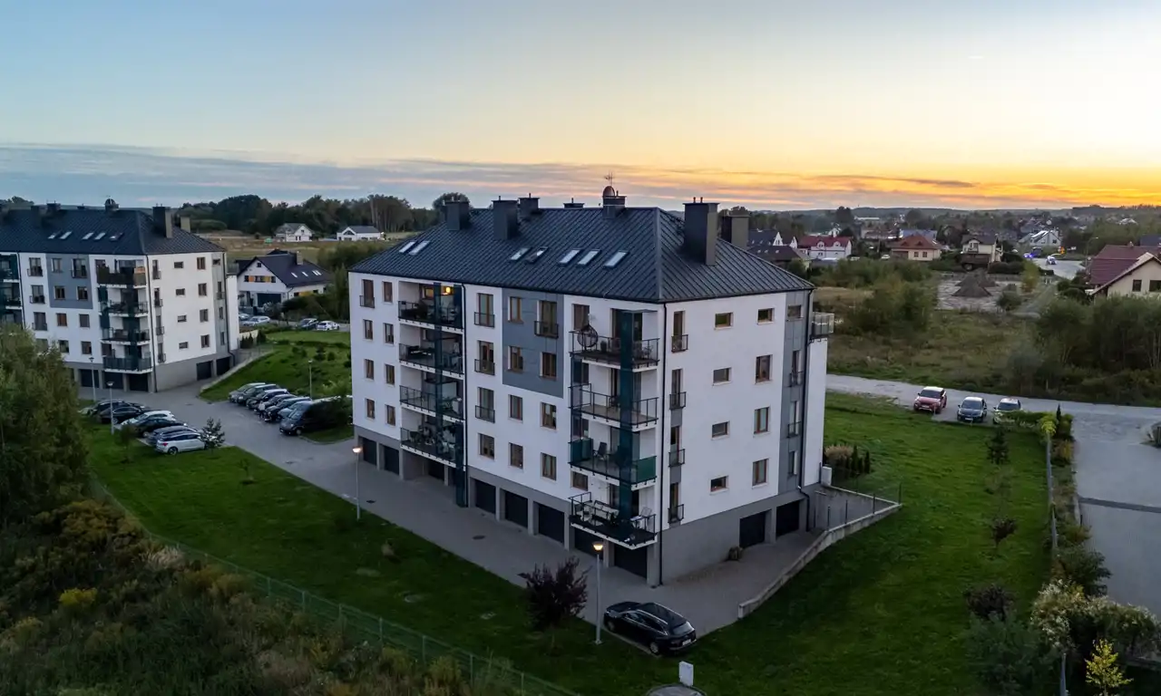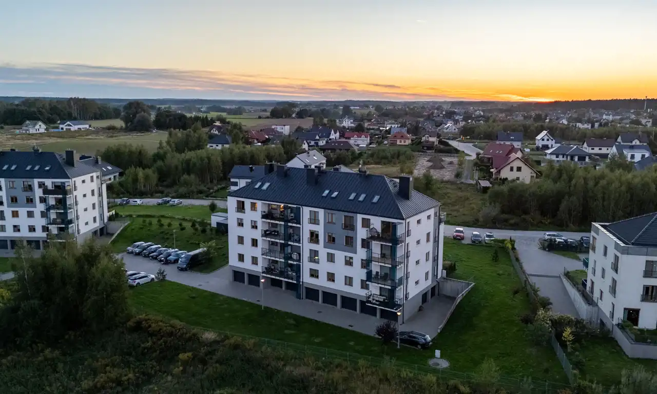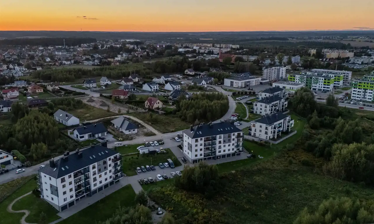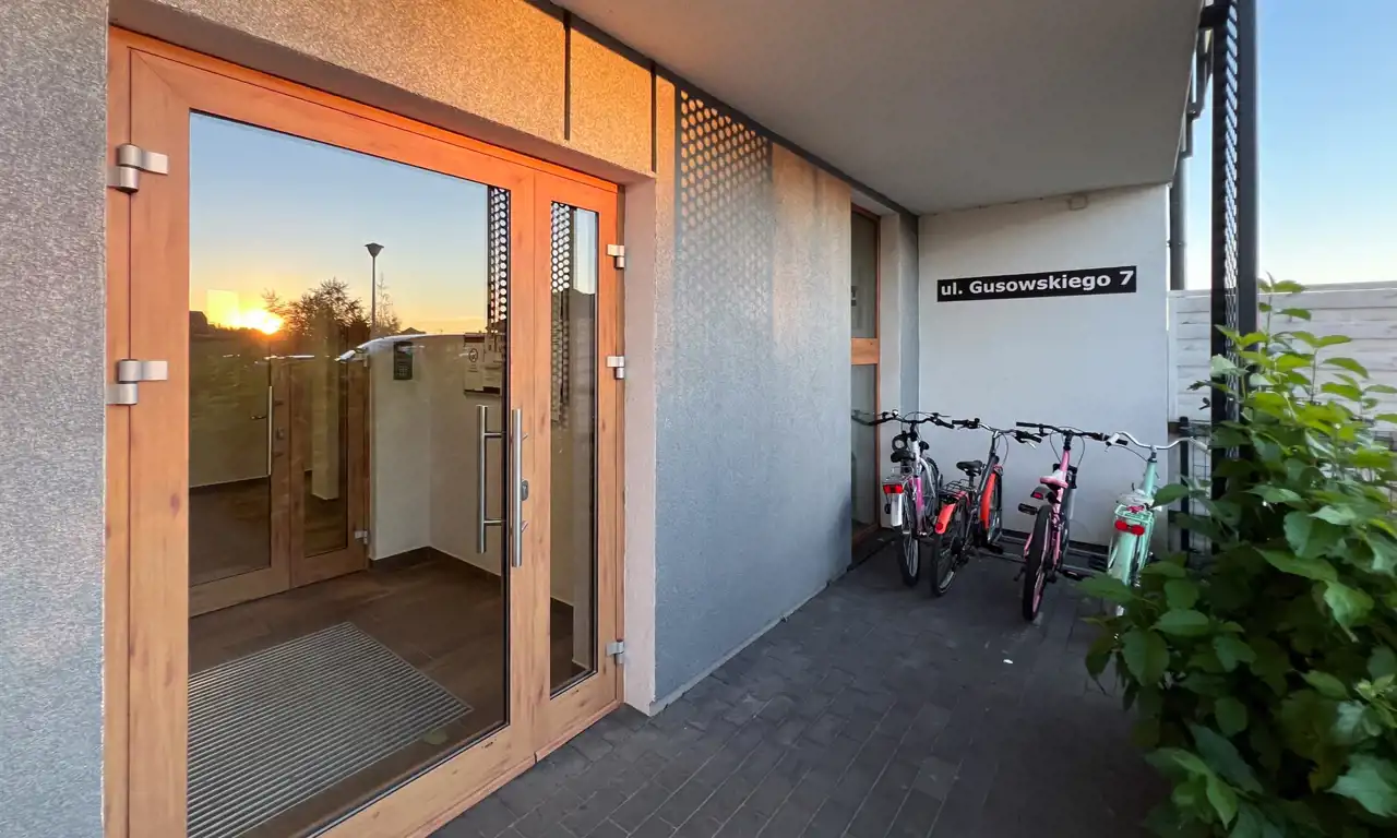 Mieszkanie położone jest na osiedlu Zielona Dolina przy ul. Alojzego Pawła Gusowskiego 7 w Starogardzie Gdańskim. Nowoczesny blok z 2019 roku znajduje się na zamkniętym, monitorowanym terenie z placem zabaw, licznymi miejscami parkingowymi i piękną zielenią wokół. Między budynkami zachowano duże odległości, dzięki czemu mieszkańcy mogą cieszyć się ciszą i prywatnością. Wokół dominuje zabudowa jednorodzinna, a wśród sąsiadów przeważają młode rodziny. Mieszkając tutaj ma się wszystko pod ręką. W obrębie 2 kilometrów znajdziesz wszystko co potrzebne do codziennego funkcjonowania, od przedszkola i szkoły, po restauracje, siłownie i sklepy spożywcze.