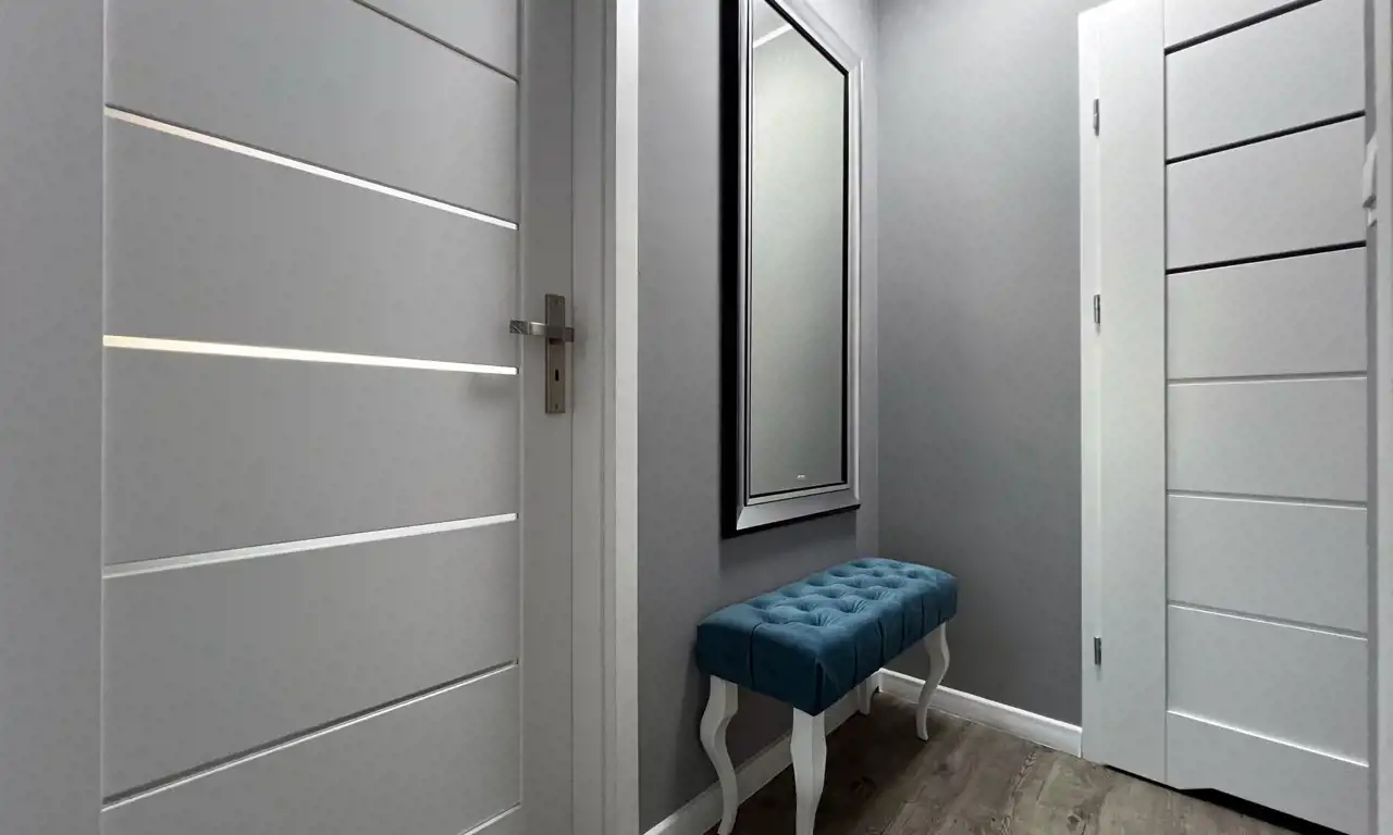 - Wygodny korytarz z dużą szafą w zabudowie.