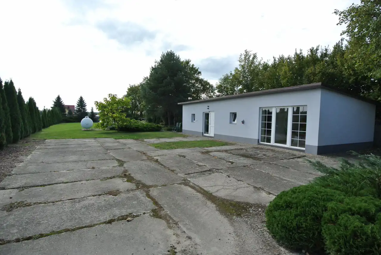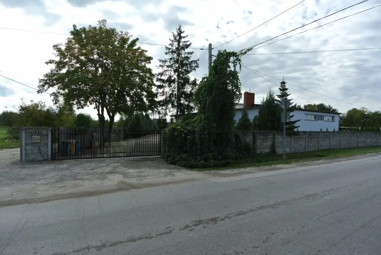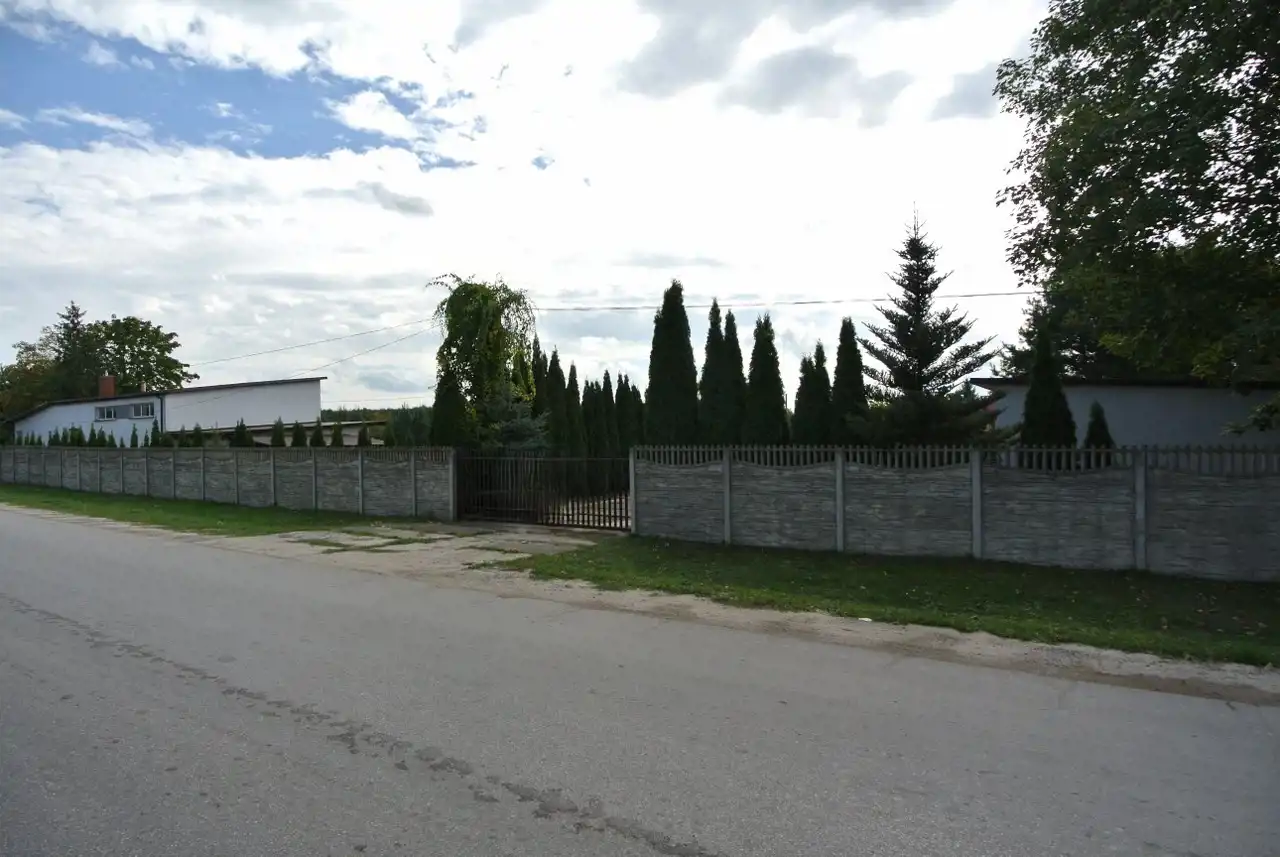 Na działce znajduje się budynek (hala) o powierzchni ok. 160 m2 z częścią mieszkalną, biurową, pokojami, łazienką, kuchnią i przedpokojem, hala z 2 bramami wjazdowymi. Dodatkowo dostępny jest lokal o pow. ok. 70 m2 o charakterze magazynowym z trzema pomieszczeniami. Budynki wybudowane z pustaka i cegły, pokryte blachą.