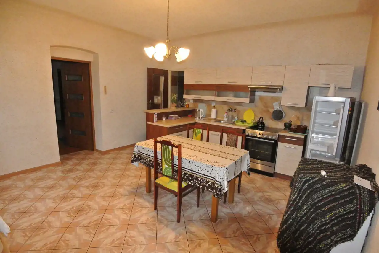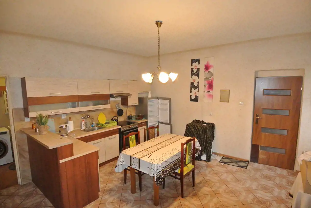 - mieszkanie na parterze o pow. 55,08m2 składające się z: pokoju, kuchni, łazienki z WC, przedpokoju i pomieszczenia gospodarczego, z dostępem do kotłowni o pow. 18,93m2. Ogrzewanie piecem na ekogroszek. Lokal w stanie do remontu/odświeżenia.