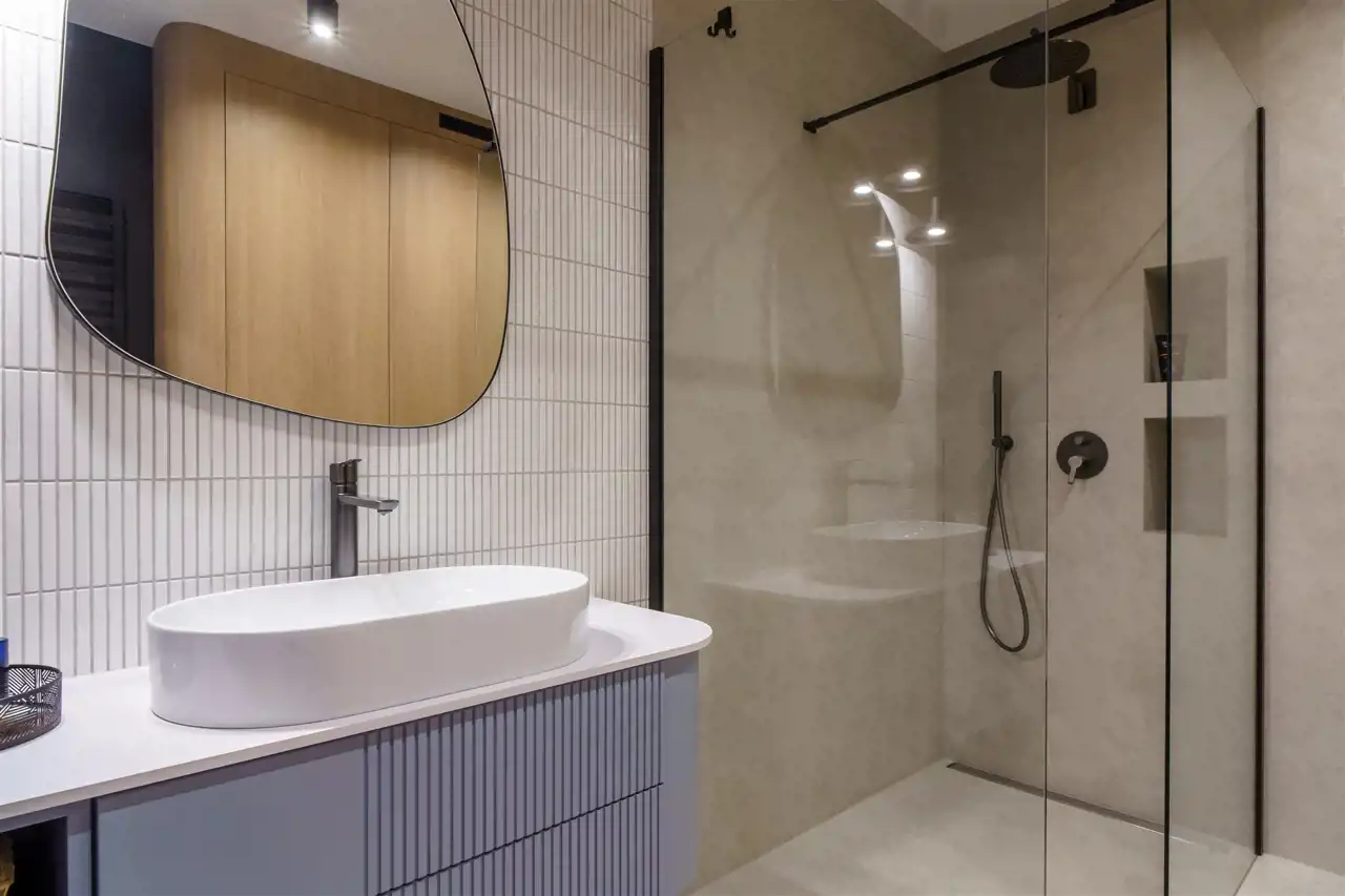 - Łazienka z prysznicem o powierzchni 6,7 m2;
