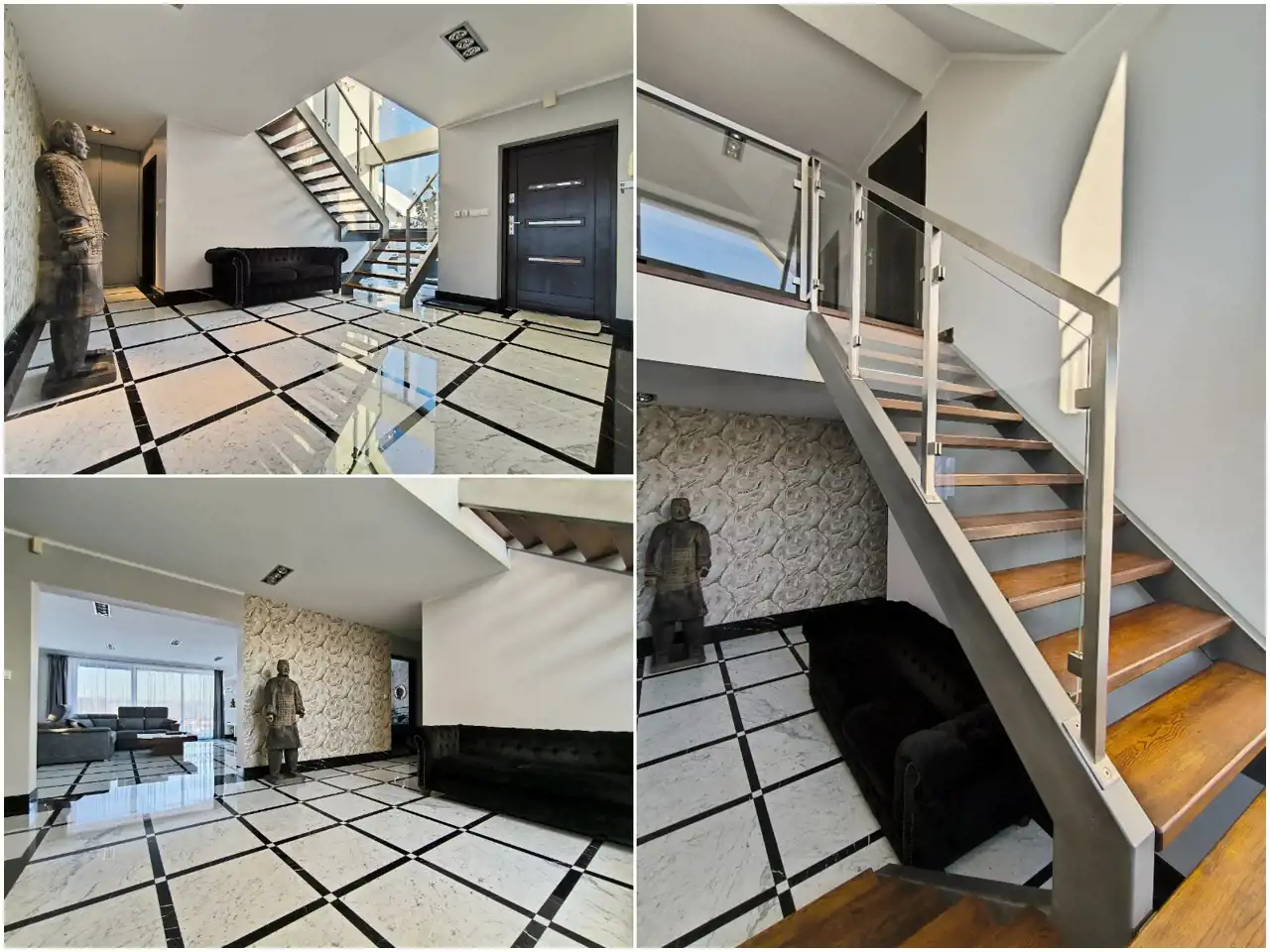 MB Nieruchomości oferuję nowoczesny dom z 2025 r o powierzchni 211 m2 położony na ogrodzonej i zagospodarowanej działce 1356 m2 w miejscowości Stawiguda do granicy Olsztyna 10 km. Dom wybudowany z bardzo wysokiej jakości materiałów w pełni wyposażony i umeblowany gotowy do zamieszkania. Na parterze domy: hall 20 m2, salon połączony jadalnią 45 m2 z kominkiem i wyjściem na taras 100 m2 , sypialnia z własną łazienką, łazienka, kuchnia, kotłownia z piecem gazowym i instalacją solarną, pralnia. Na piętrze: przedpokój 17 m2, sypialnia 24 m2, sypialnia 24 m2, sypialnia 20 m2 duża łazienka z wanną i prysznicem 17 m2, dwa balkony. Na podłogach : marmur i wysokiej klasy panele. Okna PCV 3 szybowe. Rolety na wszystkich oknach. Ogrzewanie gazowe , podłogowe , solary na dachu. Dom bardzo ciepły i oszczędny. Na działce garaż i wiata na 3 samochody. Wszystkie media: prąd, woda, gaz, kanalizacja, monitoring i alarm.