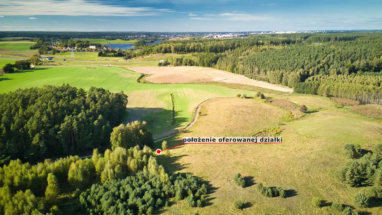 Działka położona jest na terenie przeznaczonym pod budynki mieszkalne jednorodzinne w otoczeniu przyrody. Niedaleko znajduję się jeden dom, lasy oraz jezioro Kielarskie. Okolica jest cicha i spokojna, nieruchomość idealna dla osób które szukają działki pod budowę domku rekreacyjnego ze względu na cisze.