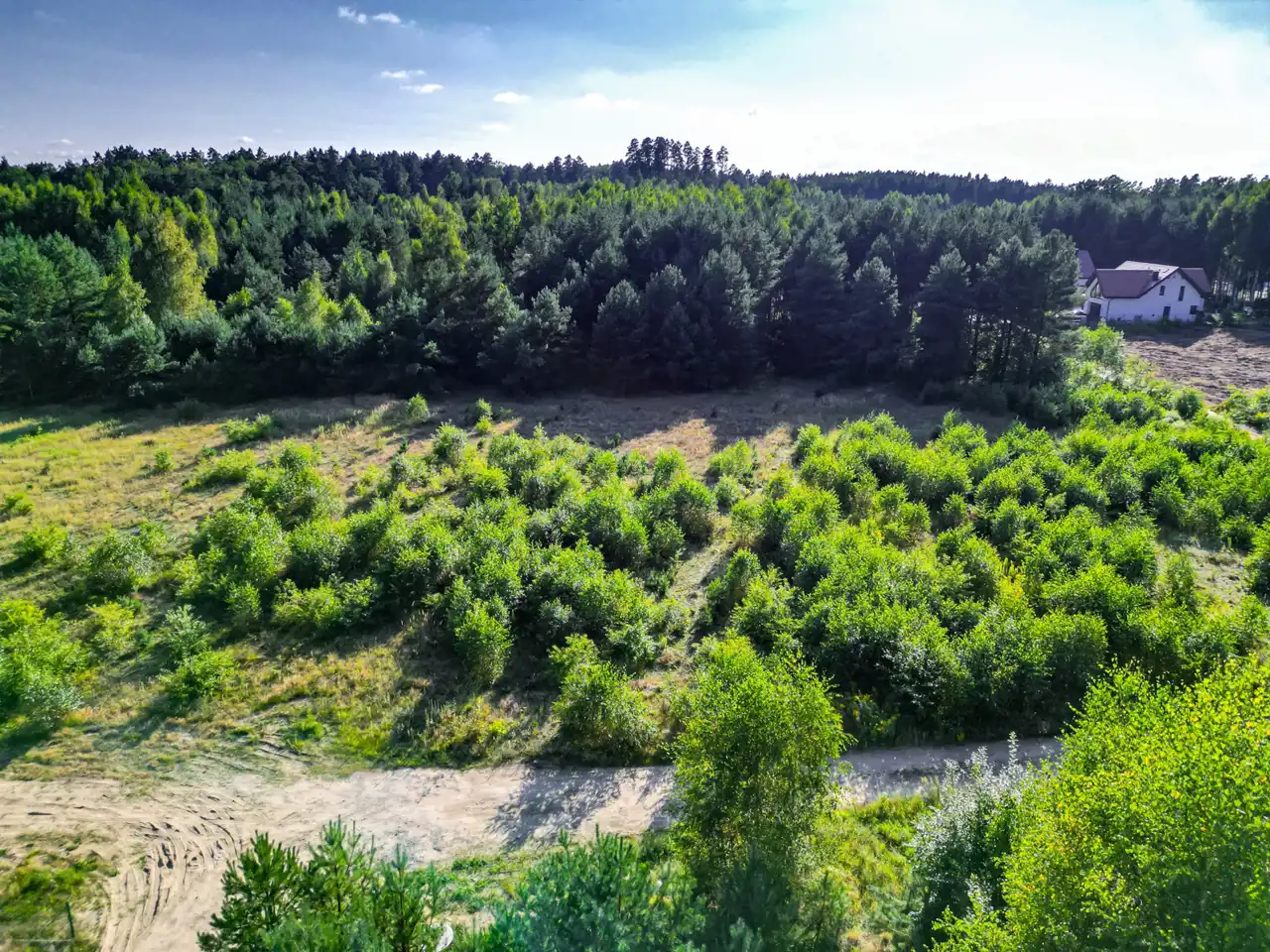 Działka jest płaska i nie wymaga wielu prac ziemnych - idealna pod budowę domu.