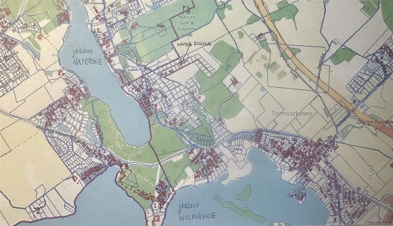 Działka o pow. 3000 m2 w Tomaszkowie (prestiżowa podolsztyńska miejscowość). W odległości kilkuset metrów od działki dwa atrakcyjne turystycznie i krajobrazowo jeziora (Naterskie Świętajno i Wulpińskie) oraz pole golfowe (Mazury Golf and Country Club). Działka ma kształt regularnego prostokąta 65,5x45m. Dojazd do działki: kilkadziesiąt metrów drogi gruntowej (udział), dalej droga utwardzona i asfaltowa. Do Olsztyna 8 km, do Warszawy 210 km (2,5 godz.). Działka objęta planem zagospodarowania przestrzennego z przeznaczeniem na budownictwo mieszkalne, jednorodzinne. Przy działce gaz, niedaleko wodociąg, sieć kanalizacyjna i energetyczna.