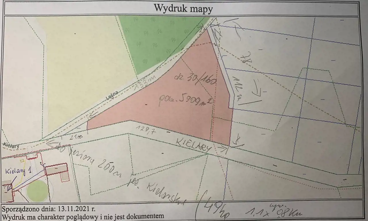 - Działka Niezagospodarowana, lekko nachylona, nieregularny