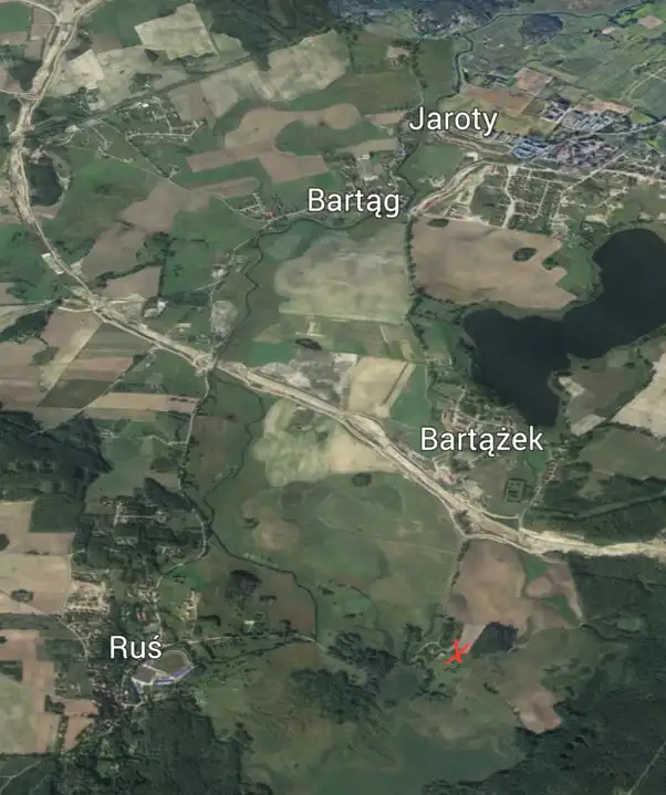 Atrakcyjna działka na Warmii o pow. 5900 m2 w miejscowości Bartążek, z widokiem na jez. Kielarskie (49 ha). Działka (częściowo zalesiona) ma kształt zbliżony do trójkąta i położona jest na niewielkim wzniesieniu umożliwiającym widok na jezioro i okoliczny, malowniczy krajobraz. W pobliżu znajduje się nowoczesna rezydencja, wzniesiona na miejscu dawnego historycznego dworu. Energia elektryczna na sąsiedniej działce, woda i kanalizacja - we własnym zakresie nabywcy. Bezpośrednie sąsiedztwo lasów Puszczy Napiwodzko - Ramuckiej i ciekawego turystycznie jeziora podnosi atrakcyjność lokalizacji. Na nieruchomości znajduje się pozostałość cylindrycznego zbiornika/silosa dawnej gorzelni - dająca możliwość niebanalnej adaptacji. Odległość do wsi Ruś -ok.1,2 km. (dojazd drogą utwardzoną), do Olsztyna- 12 km., do Warszawy -217 km (2h50m, a po ukończeniu drogi ekspresowej, znacznie krócej).