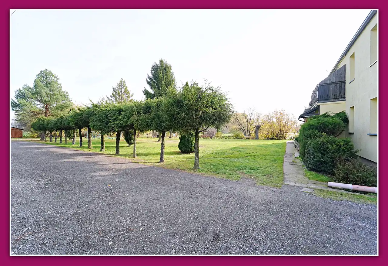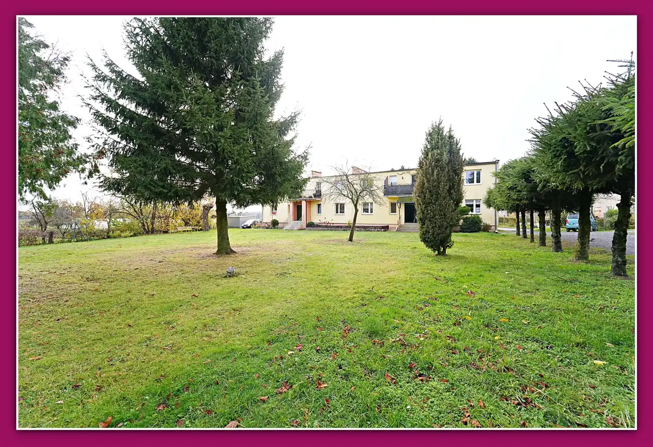 Opisany budynek mieszkalny zabudowany jest na działce o powierzchni 3071 m2 i sąsiaduje bezpośrednio z działką, na której znajduje się malowniczy, zarybiony staw. Działka zadbana z licznymi nasadzeniami drzew oraz urządzonym placem zabaw dla najmłodszych. Nieruchomość zarządzana jest przez wspólnotę mieszkaniową przy udziale profesjonalnego zarządcy nieruchomości.