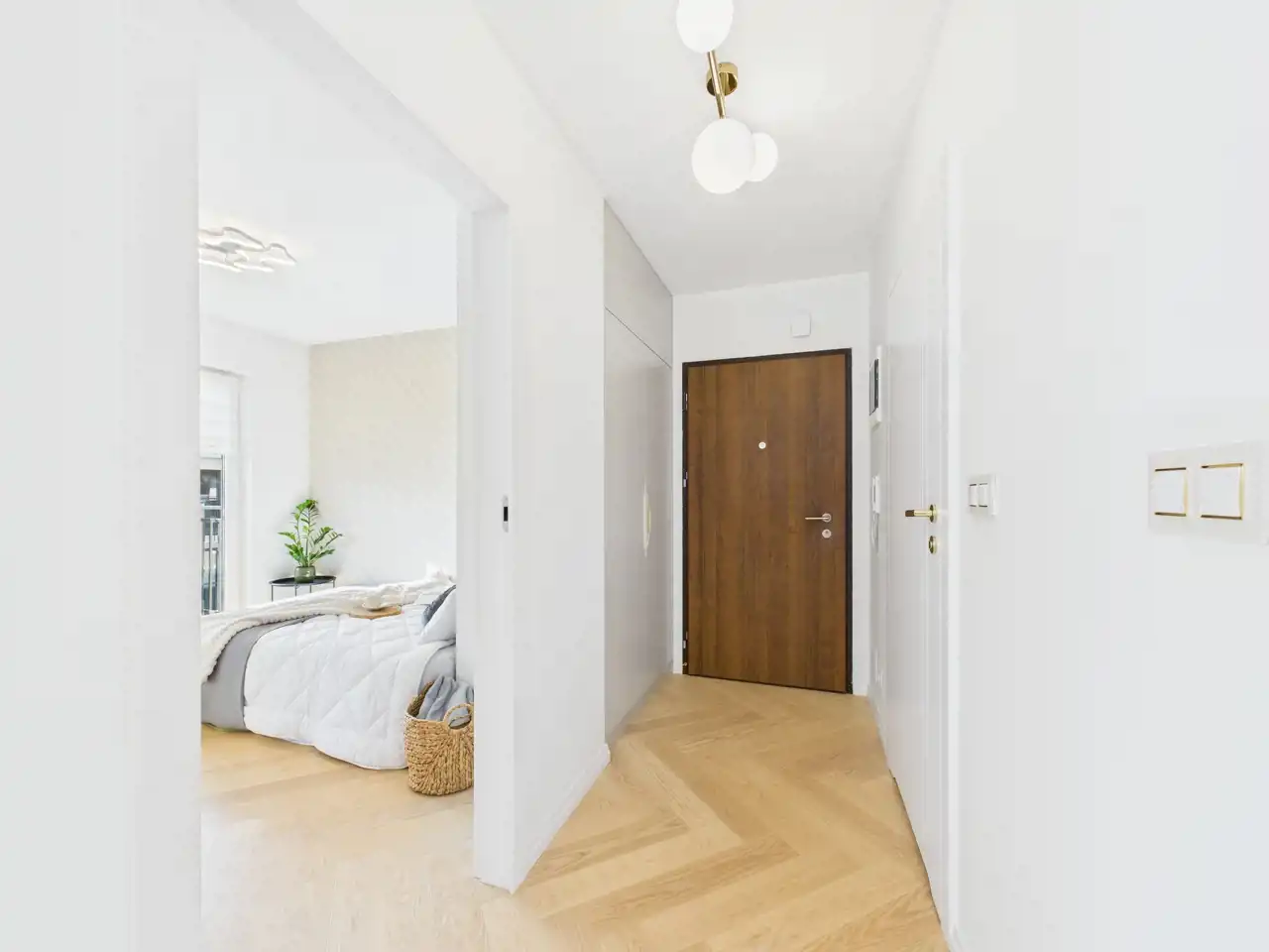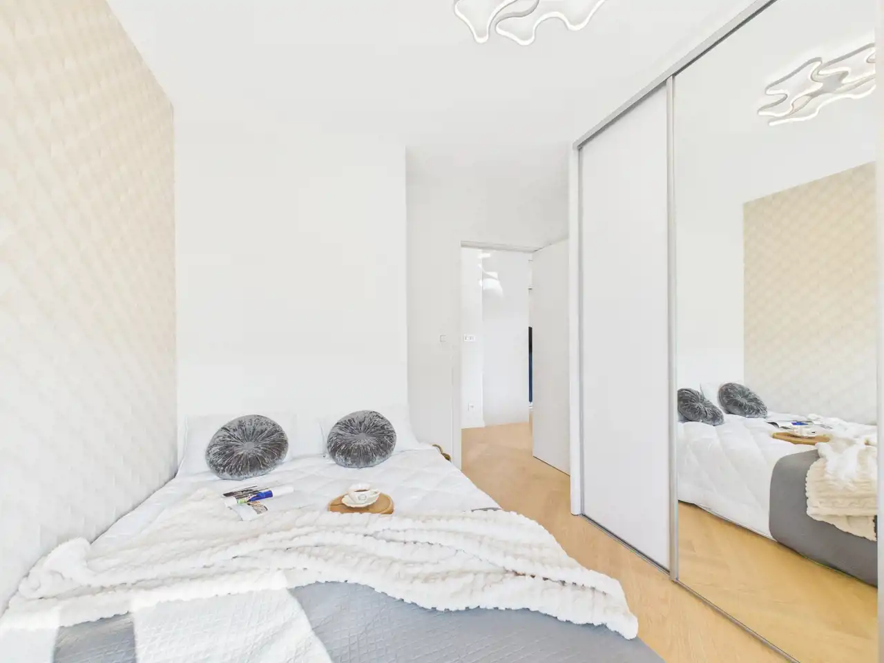 - Sypialnia oraz przedpokój - wyposażona w głębokie meble na wymiar,