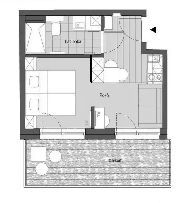 - Charakterystyka mieszkania 21.65 m2, 2 pokoje