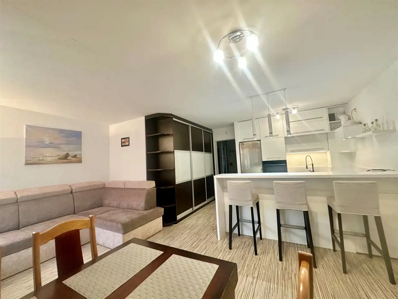 Mieszkanie w pełni wyposażone (i sprzedawane z wyposażeniem ), posiada dwie niezależne sypialnie oraz salon połączony z kuchnią (meble w zabudowie oraz sprzęt AGD) otwartą przestrzenią, przestronną łazienkę i duży balkon.