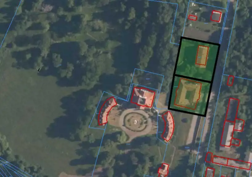 Wierzytelność zarządzana przez Intrum Sp. z o.o.- przedmiot sprzedaży- zabezpieczona jest na części całego kompleksu pałacowo konferencyjnego, tj. na dwóch budynkach znajdujących się na działkach o nr. ew. 309/9 i 309/10 o łącznej pow. 0,5222ha