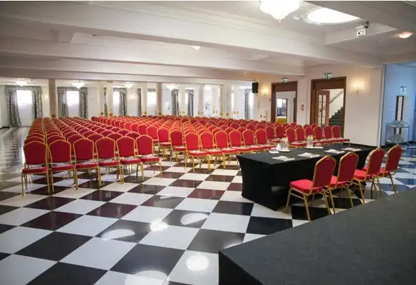 - Nowym budynku czworaków pełniącym funkcje sali konferencyjna balowej z zapleczem gastronomicznym
