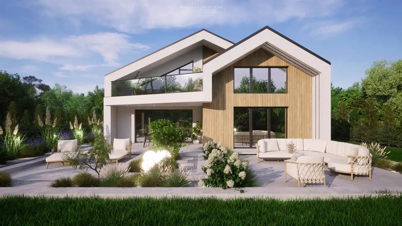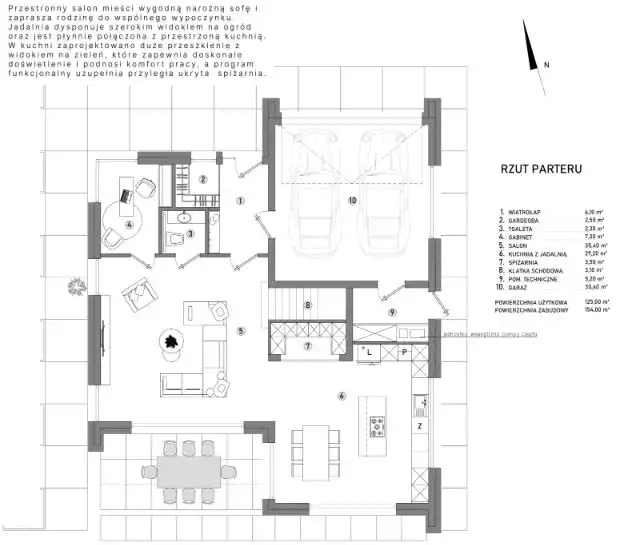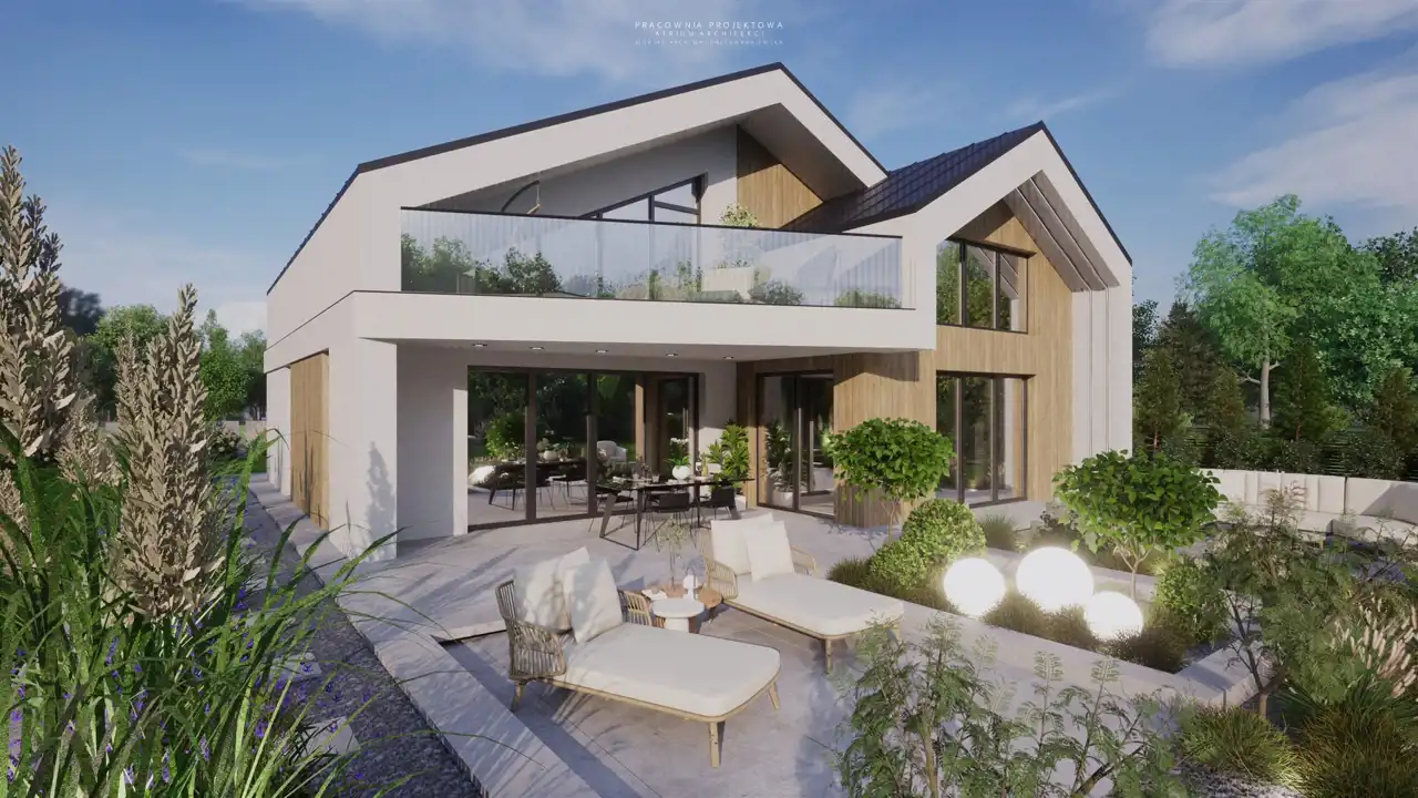 Projekt zakłada m.in. usytuowanie na parterze kuchni z jadalnią i wyjściem na taras oraz 4 sypialni na piętrze !