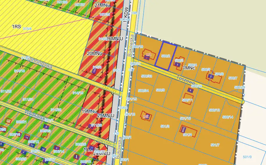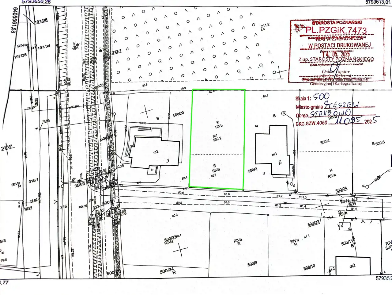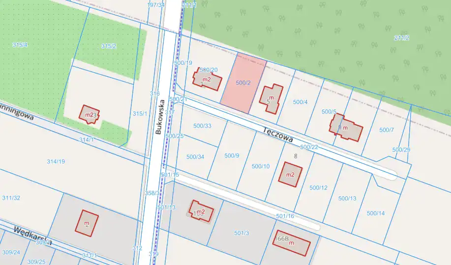 Działka budowlana 500/2 o powierzchni 666 m2.