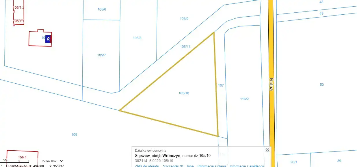 Polecam działkę budowlaną zlokalizowaną we Wronczynie koło Stęszewa (Wronczyn, gmina Stęszew).