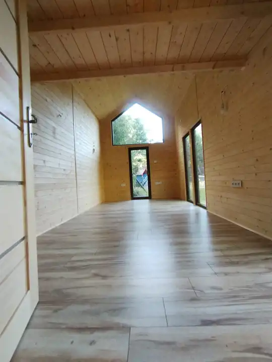 Działka pozwala na ustawienie mobilnego domku modułowego – w pełni komfortowego rozwiązania dla miłośników natury. Przykład takiego domku możesz obejrzeć tutaj: