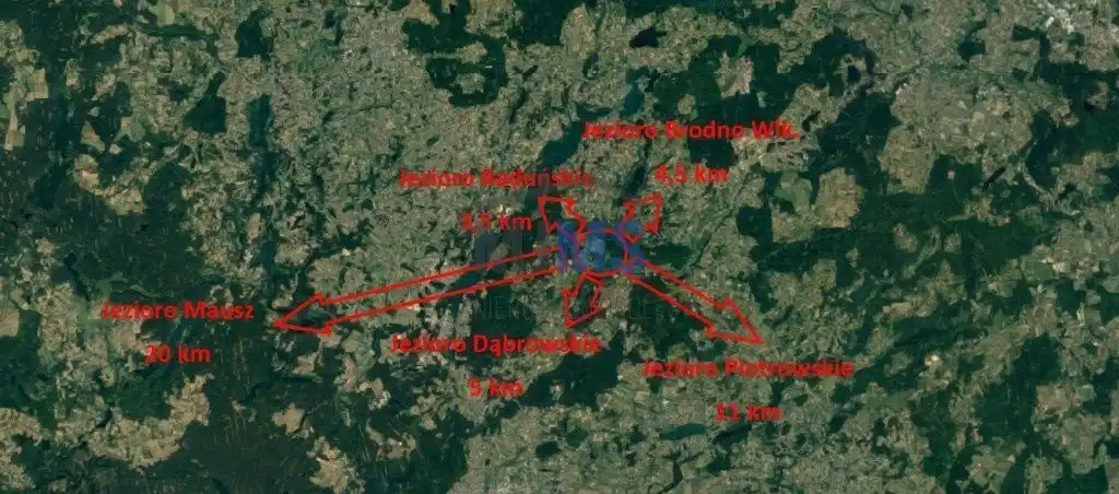 - Dojazd: droga gminna asfaltowa + 180 m drogą gruntową