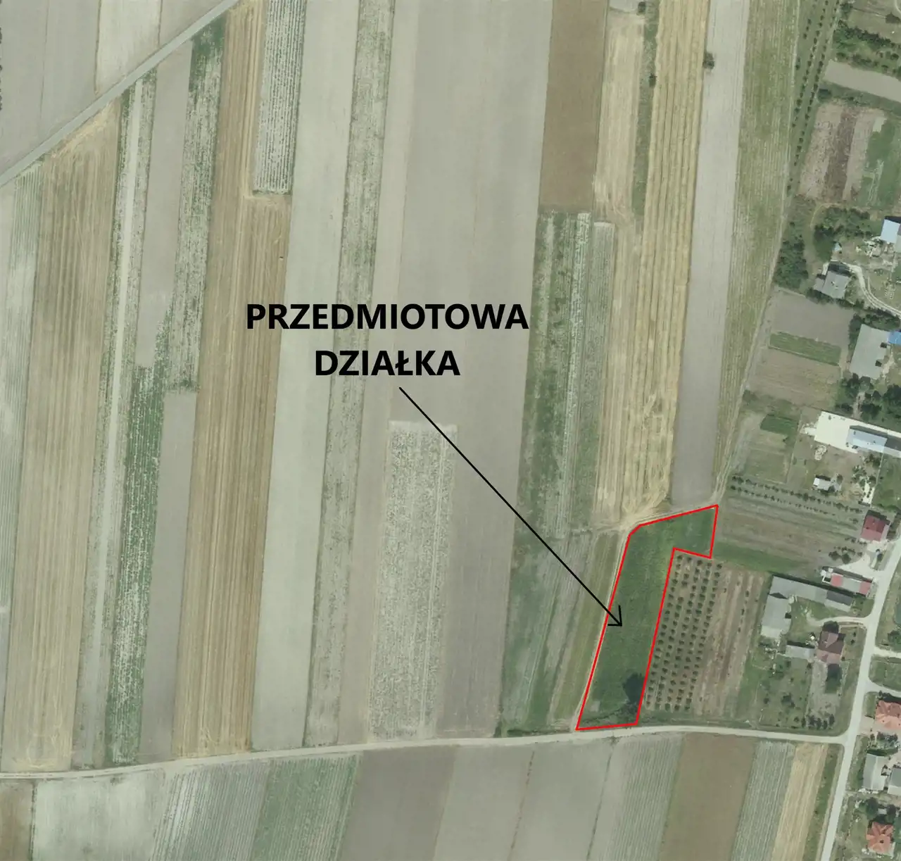 - Nieruchomość zlokalizowana przy drodze asfaltowej.