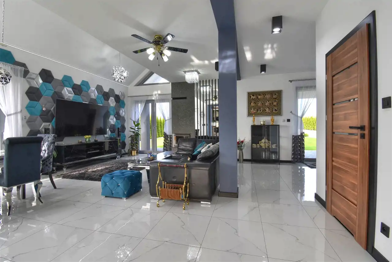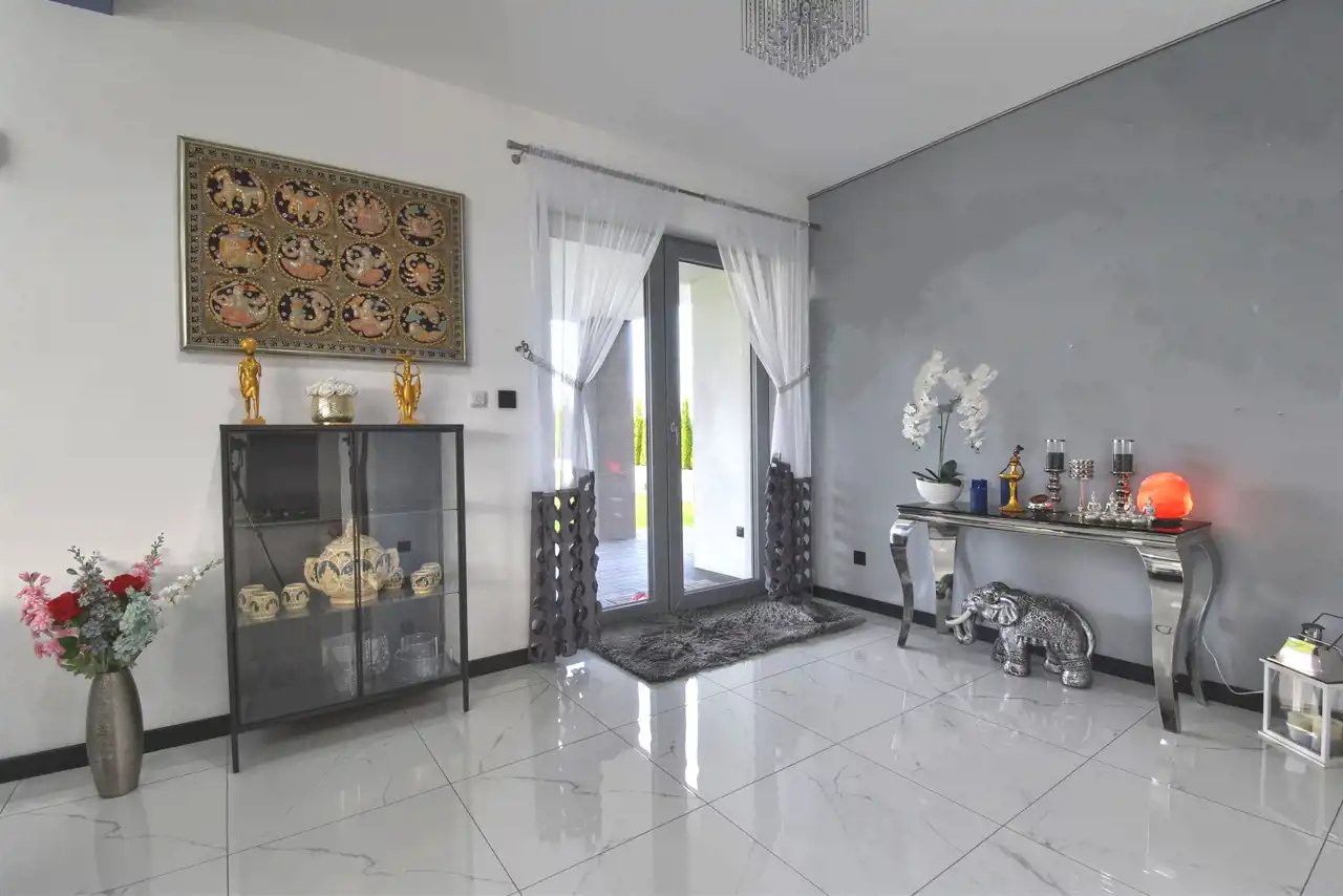 For Sale: A detached house with a usable area of 159.59 sqm (total area 185.64 sqm) located on a 6600 sqm plot in Chełmce, Strawczyn municipality. Additionally, a modern hall with an area of 200 sqm has been built on the property.