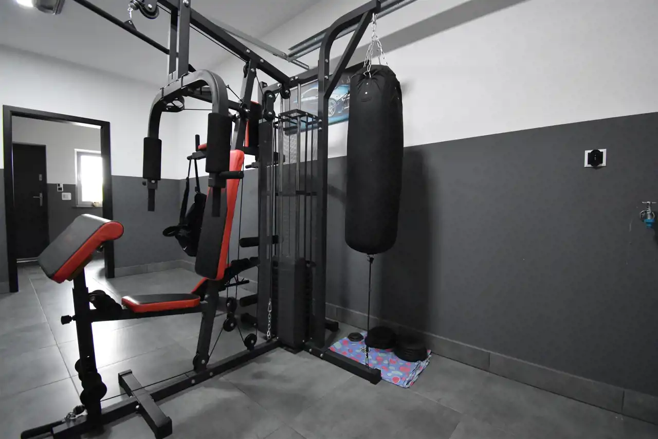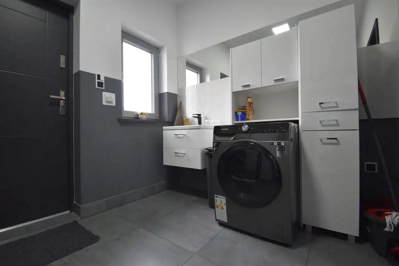 The plot where the house and hall are located is fenced, with decorative bricks and boards in the front and panels with a mesh for the rest of the area. The house is equipped with an alarm, intercom, electronic temperature controller, connected to the sewage system. It has heating from a heat pump and an alternative fireplace. Equipped with photovoltaics. The entrance gate to the property and the garage are remote-controlled.