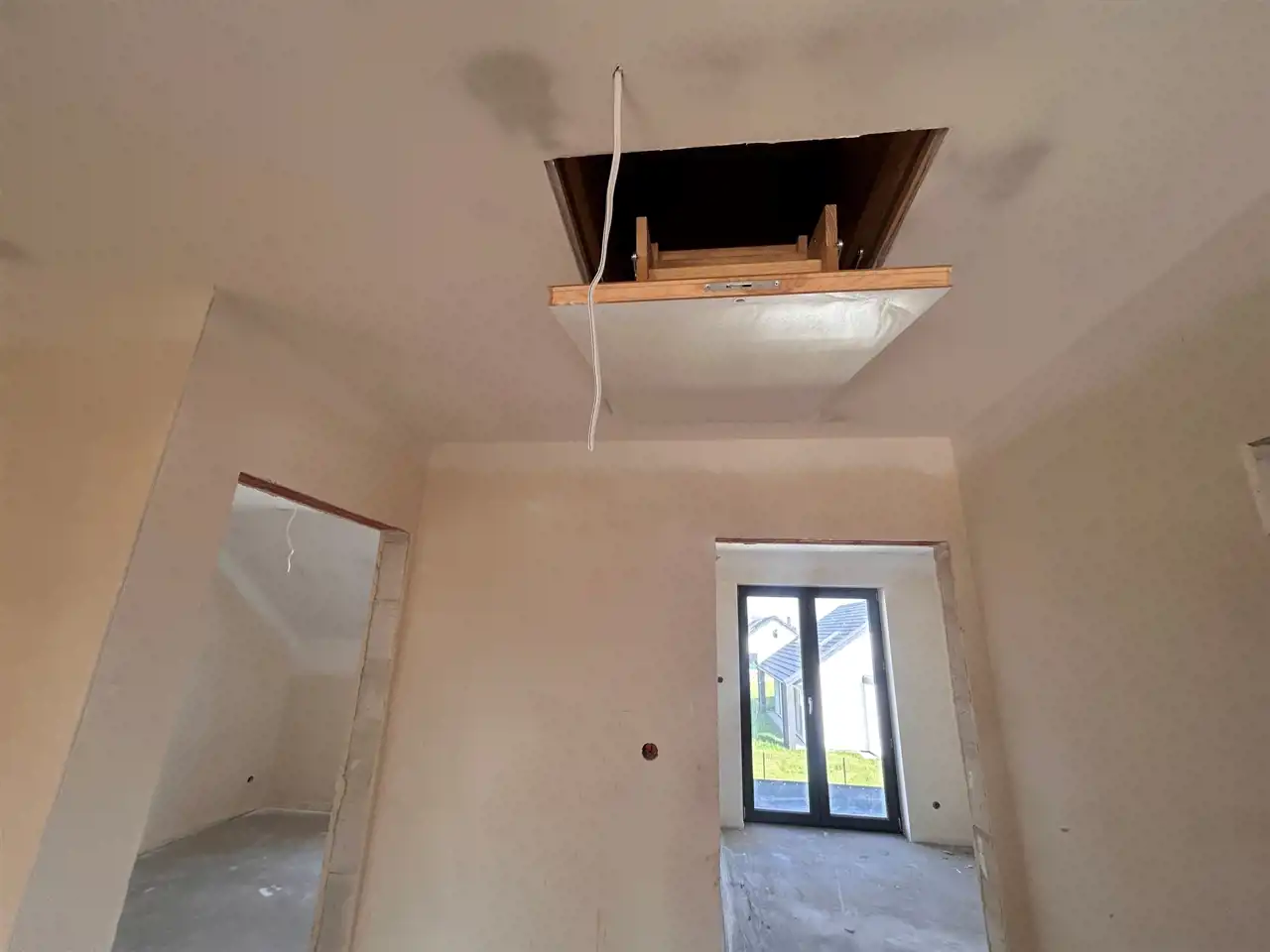 Budowa rozpoczęła się w 2022 roku, a dom jest w stanie deweloperskim zamkniętym, gotowy do wykończenia według własnego gustu. Został wybudowany z betonu komórkowego H+H, ocieplony 20 cm styropianem i pokryty blachą na rąbek, co zapewnia trwałość i dobrą izolację. Na działce znajduje się również wygodny garaż oraz teren ogrodzony i utwardzony kostką brukową, co ułatwia wjazd i parkowanie.
