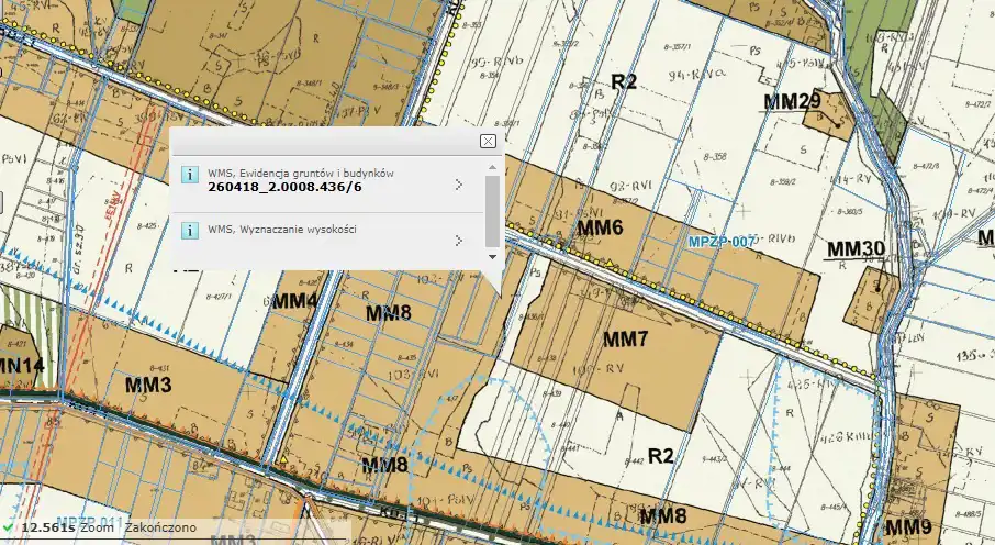 For sale: A plot of land with an area of 4,078 m², located in Oblęgór, Strawczyn municipality. The plot is covered by the Local Spatial Development Plan and is designated with the symbol MM7 – areas for farmstead development, single-family residential, service, and craft-industrial use.