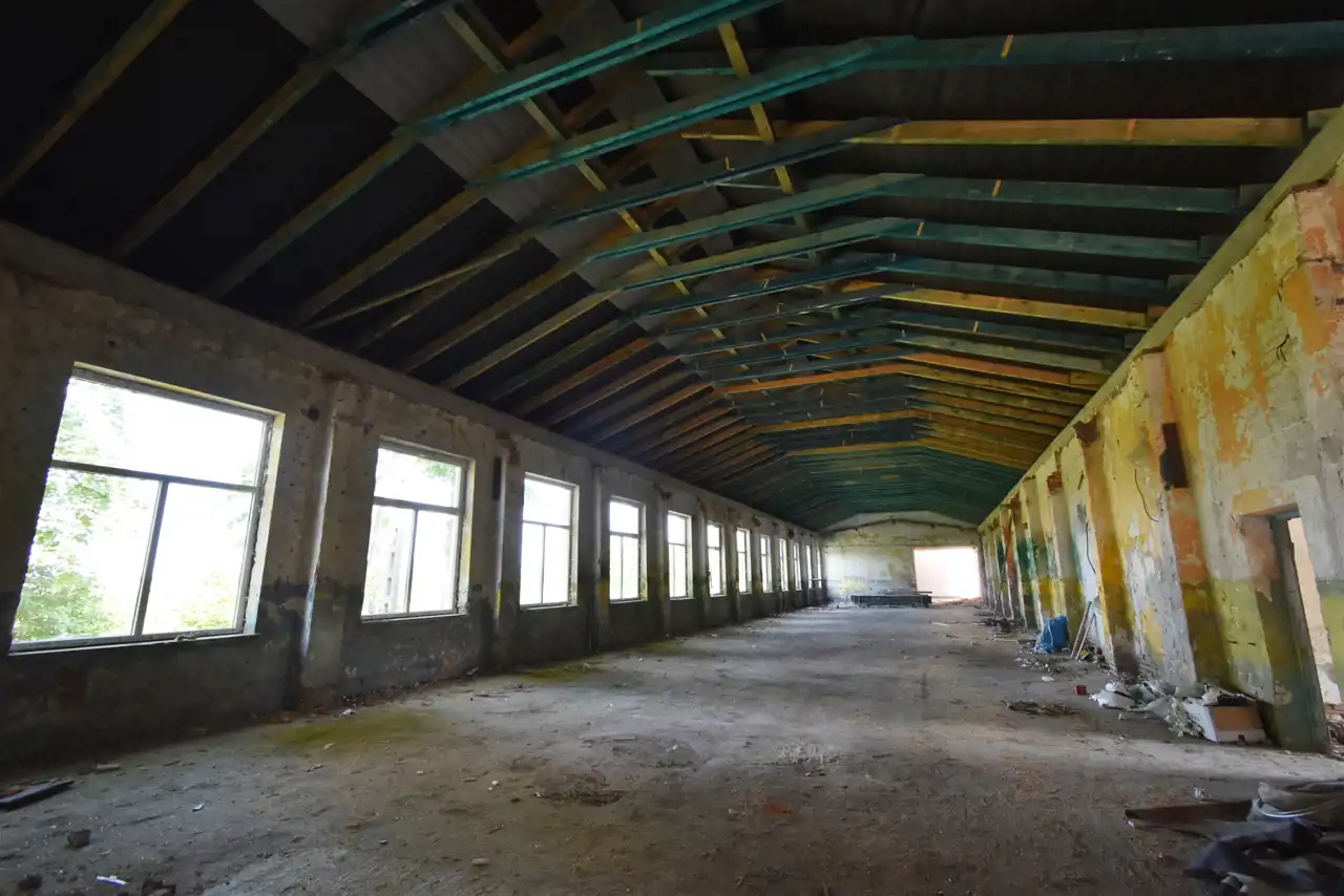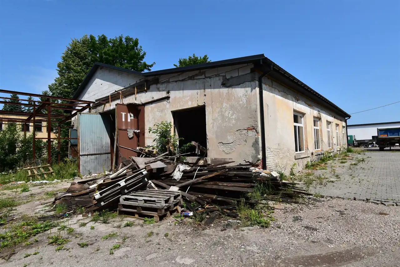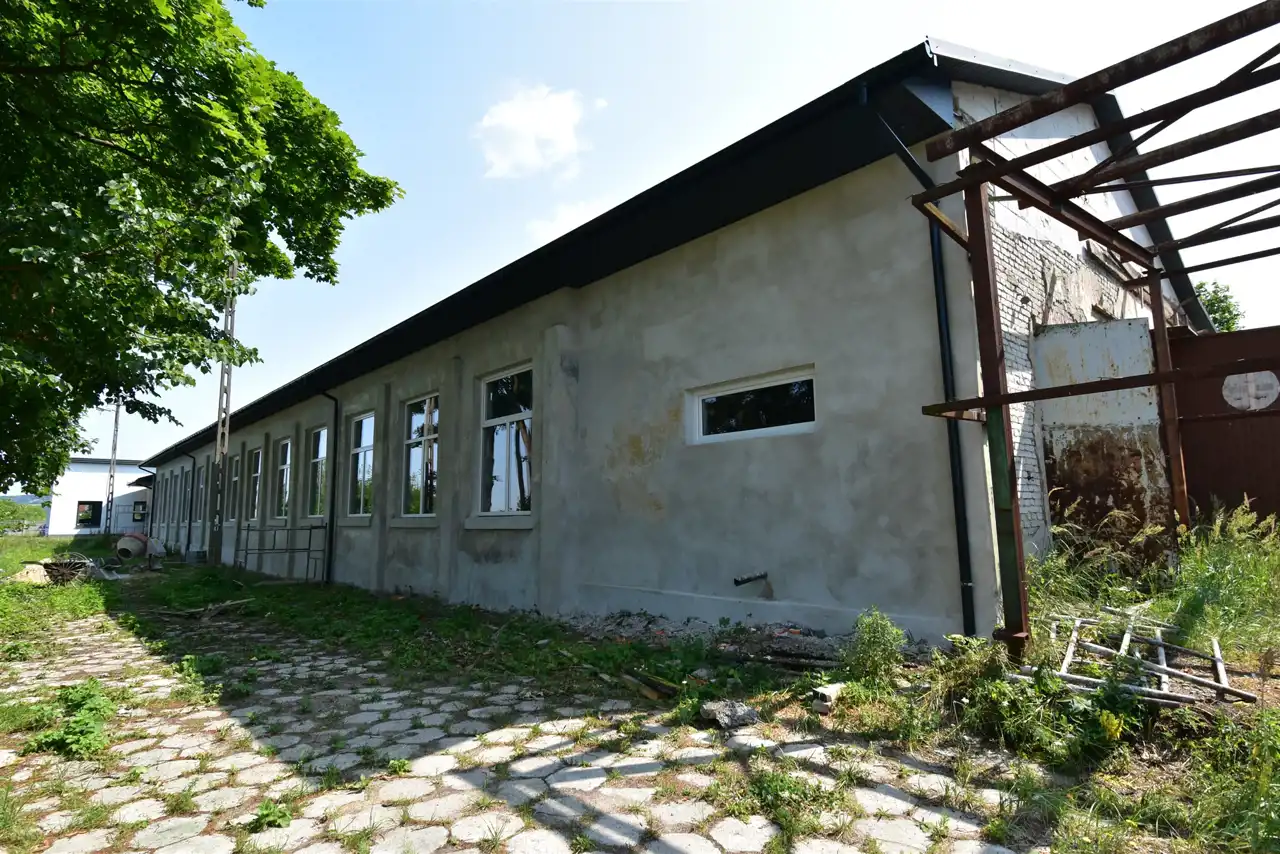 The hall is equipped with electricity, water, and sewage connections. Currently, there is no heating installed. There is a possibility to rent the area in front of the hall for an additional fee. The premises are fenced and monitored. The entrance to the hall is at ground level, and the entrance gate has a height of 4.5 meters. In 2023, the roof and windows (PVC) were replaced.