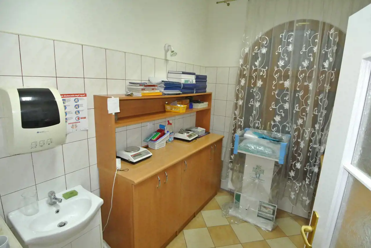 For rent: A premises with an area of approximately 100 square meters located on a busy street in Strawczyn. The premises on the ground floor include a sales room and 2 office spaces, while in the basement, there are social and sanitary facilities.