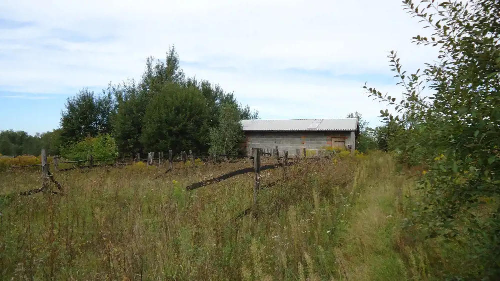 W chwili obecnej na terenie nieruchomości znajdują się 2 budynki gospodarcze po 300m2 oraz dom 100m2. Dom całoroczny drewniany. Teren ogrodzony płotem. Na dziąłce znajduję się prąd , woda-studnia głębinowa, szambo.