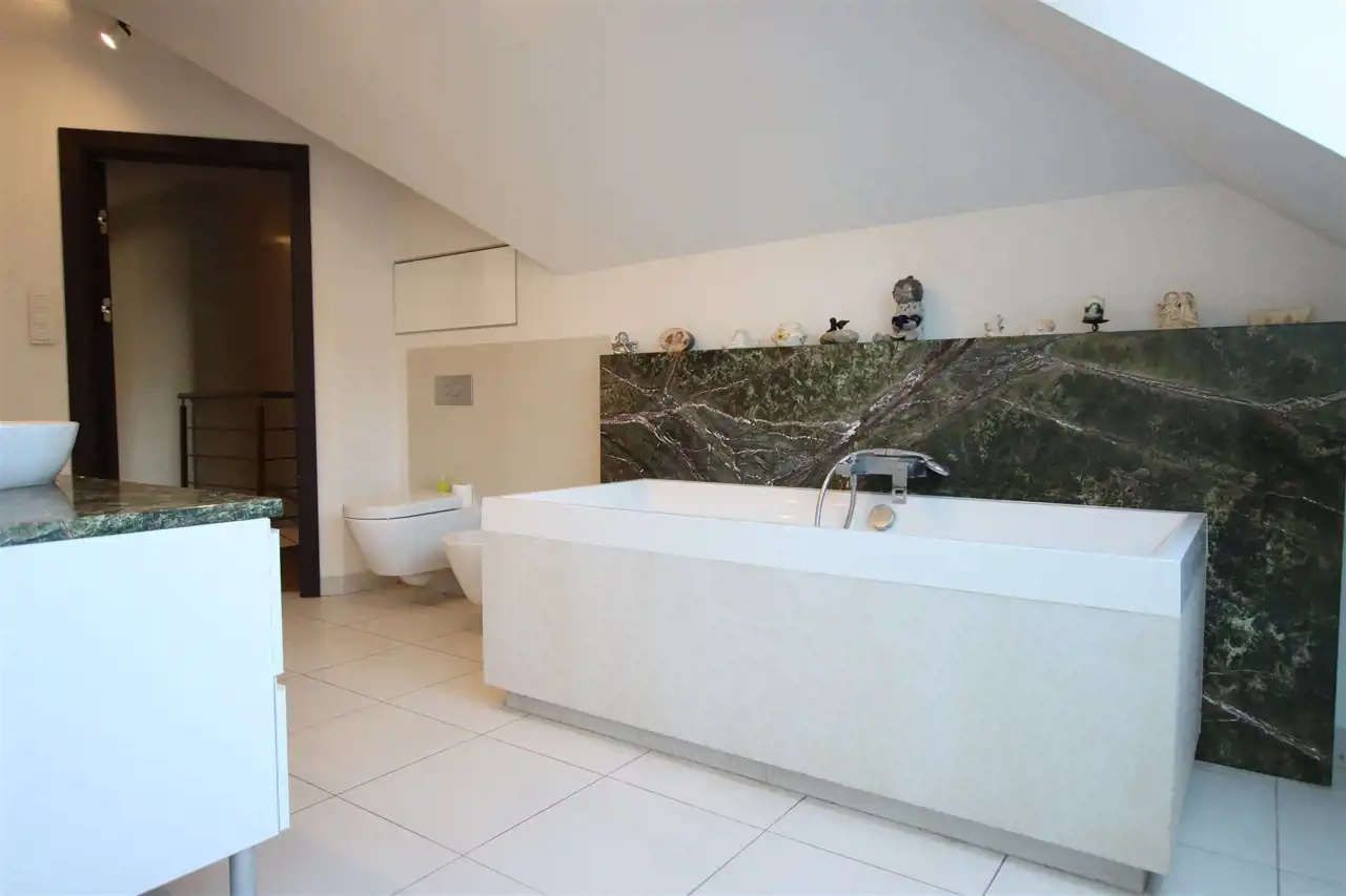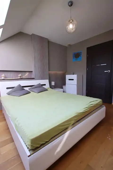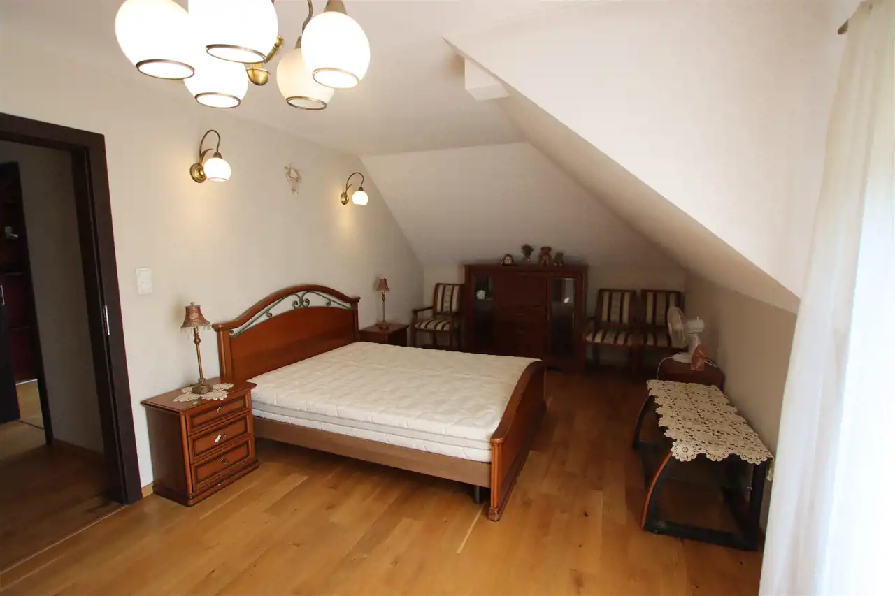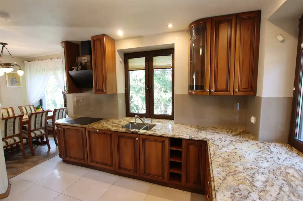 Dom znajduje się w spokojnej okolicy zabudowy jednorodzinnej, w pobliżu lasów i terenów spacerowych. To idealna propozycja dla osób szukających domu blisko miasta, ale jednocześnie w cichej i zielonej okolicy.
