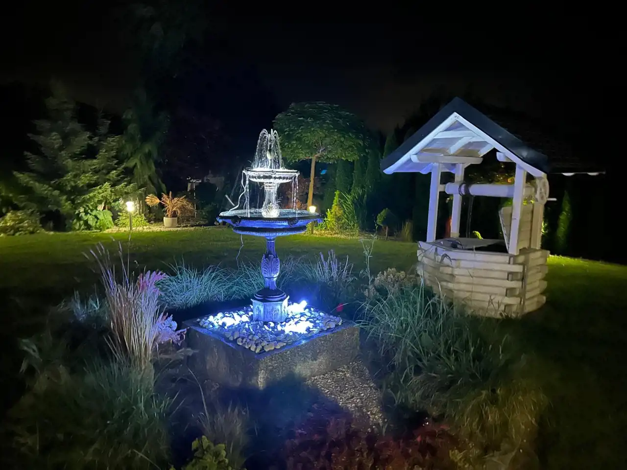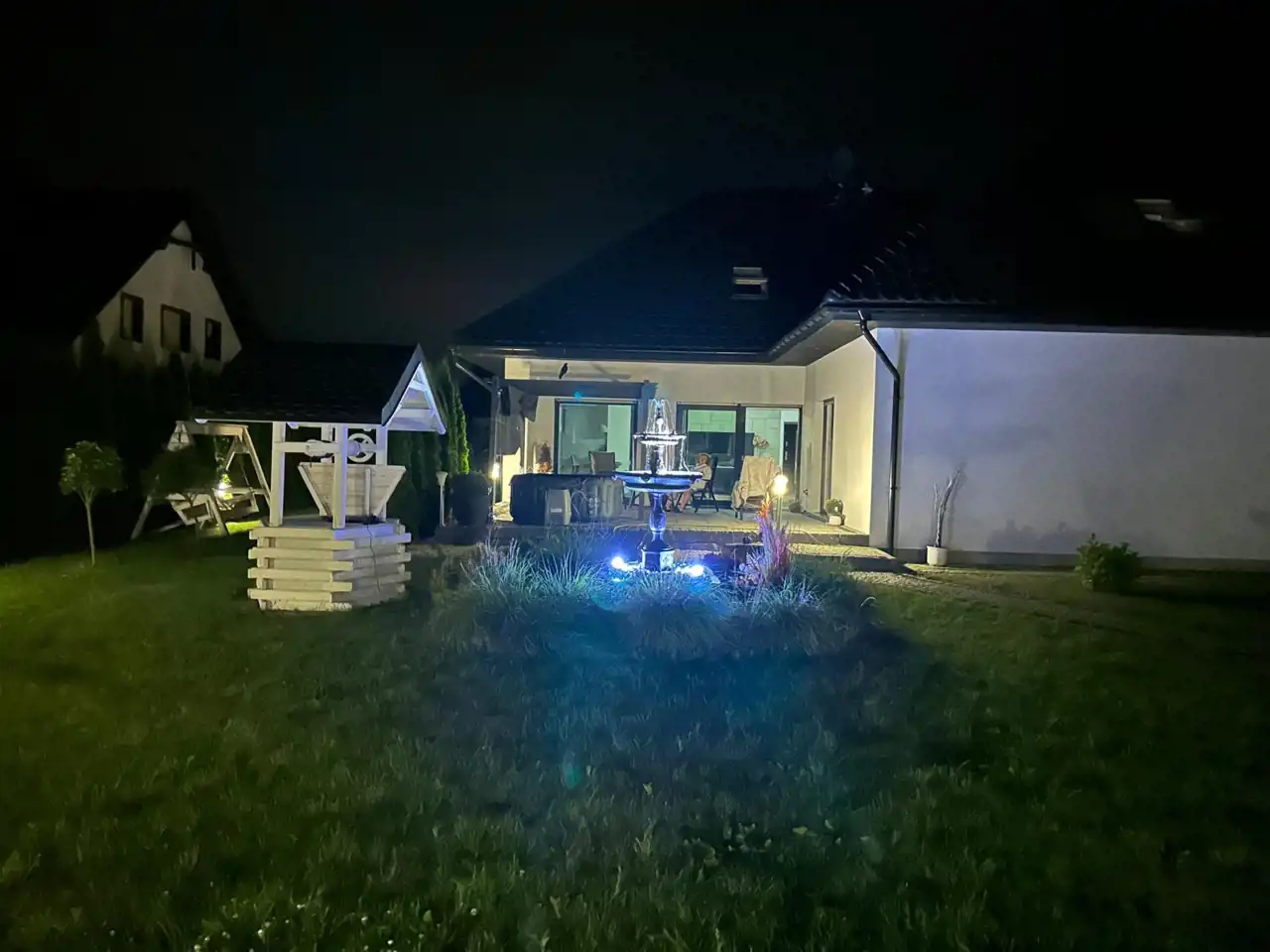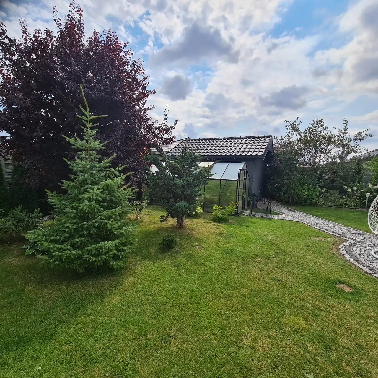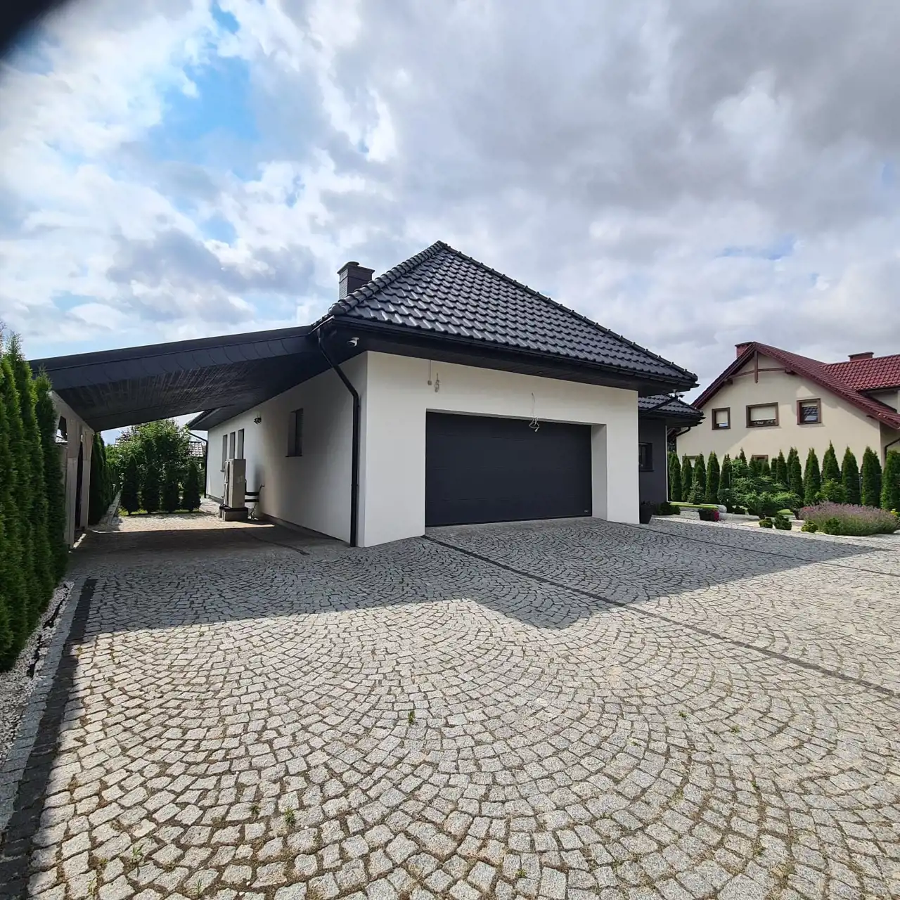 Pięknie zagospodarowana działka z nasadzeniami, ogrodzona, komunikacja wykonana z kostki granitowej.