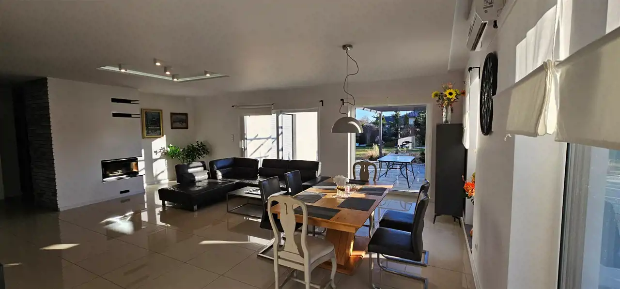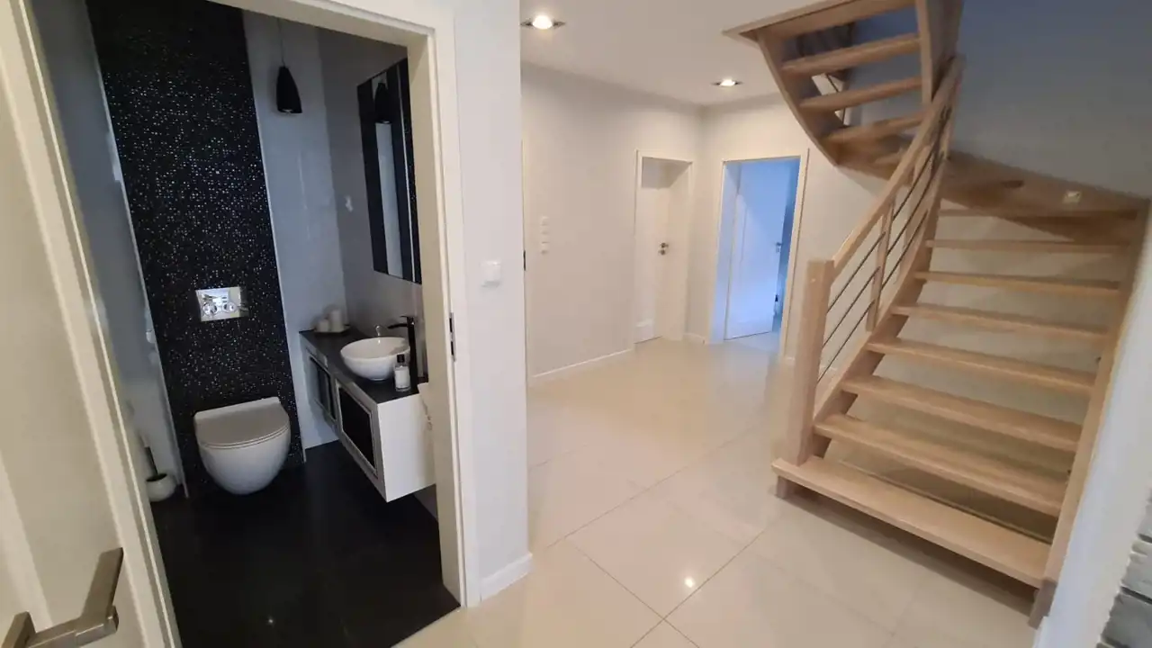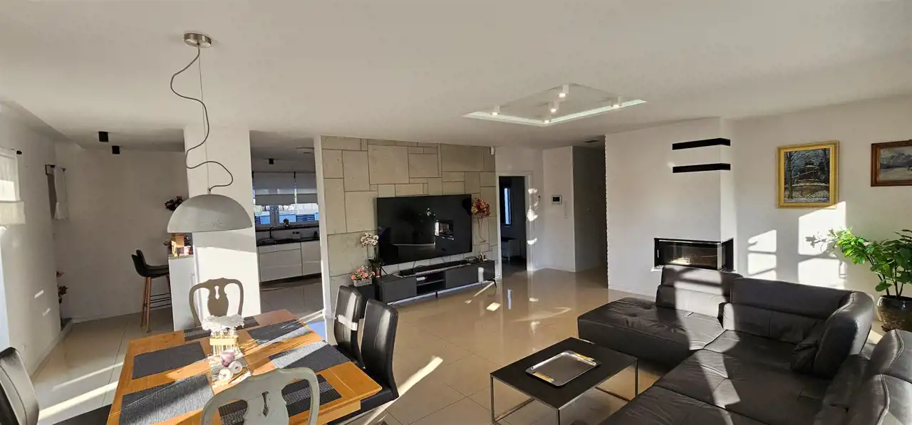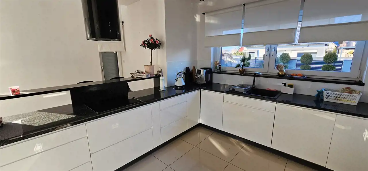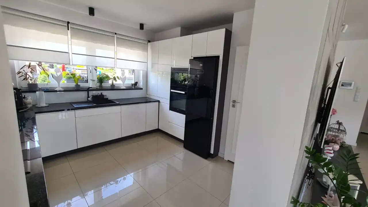 Dom oddany do użytkowania w 2017 roku o pow. 253,95 m2 z energooszczędnym systemem ogrzewania, usytuowany jest na działce o pow. 1174 m2 na osiedlu domków jednorodzinnych w Strzegomiu.