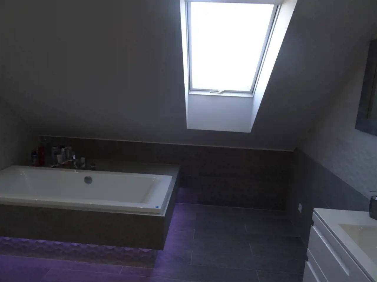 PIĘTRO (101m2): trzy przestrzenne pokoje z wysoką ścianką zakolankową (36m2, 23m2, 22m2), łazienka razem z wc oraz pomieszczenie gospodarcze służące obecnie jako prasowalnia. Pokoje wykończone panelami wysokiej jakości "dąb skandynawski", okna dachowe. W jednym z pokoi wyjście na poddasze. Łazienka razem z wc, z oknem, wyposażona w wannę, wykończona w glazurze.