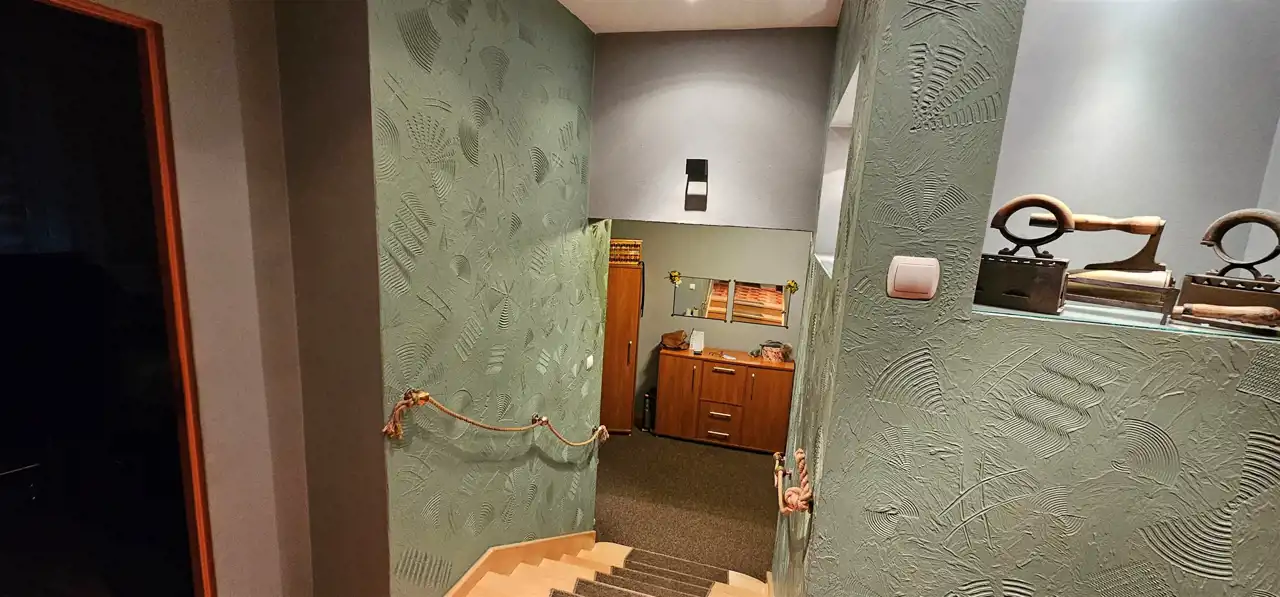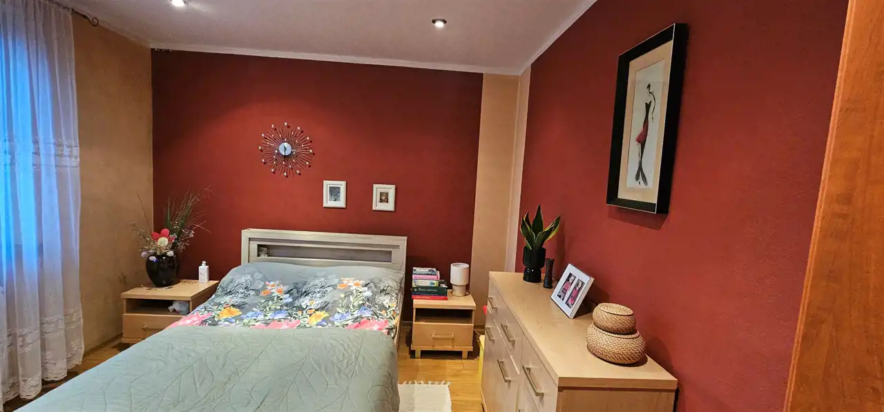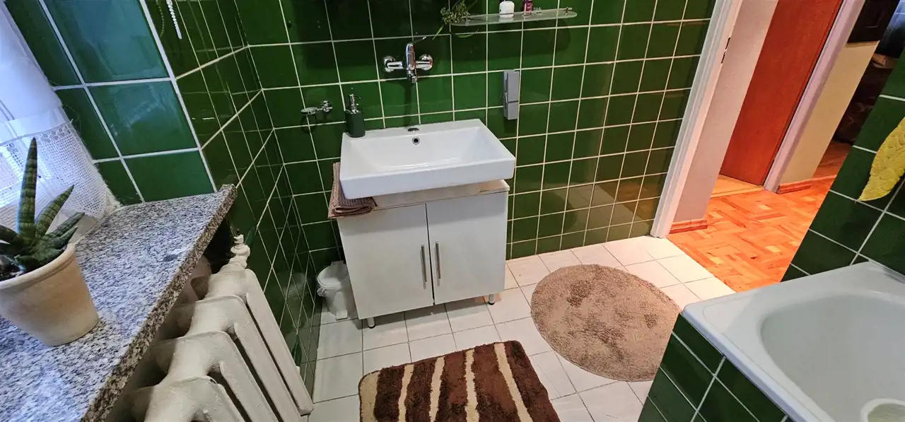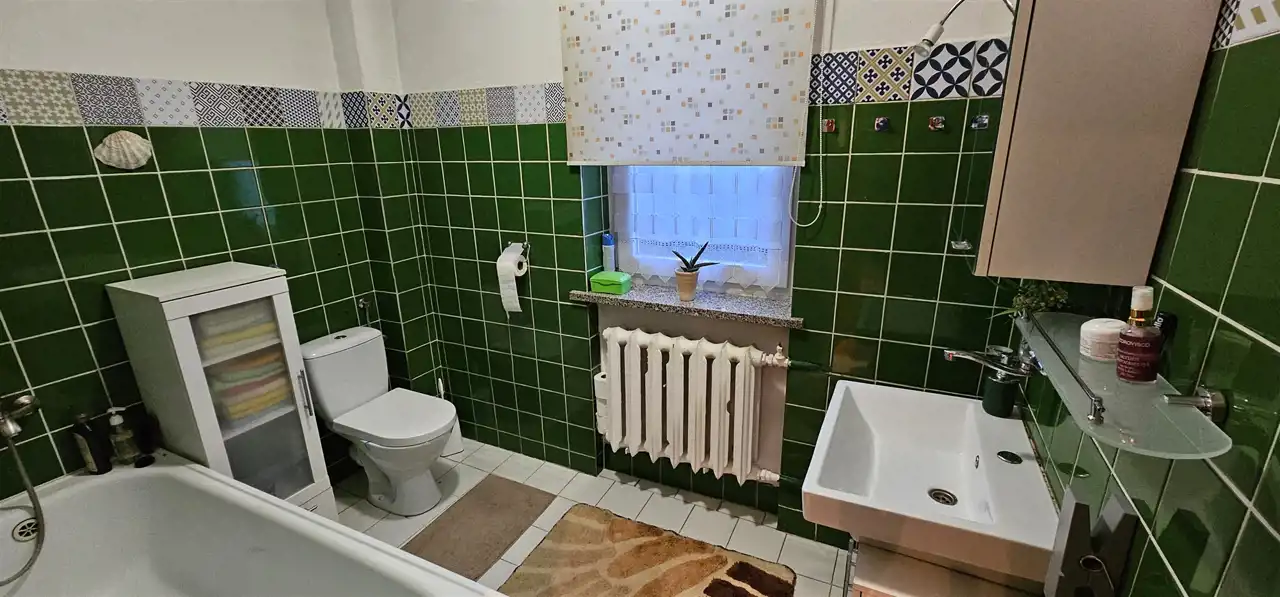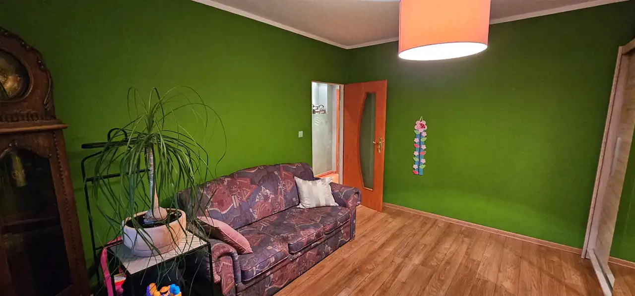 Pokoje wykończone panelami, ściany gładzone, okna PCV, jeden z pokoi wyposażony w szafę typu Komandor. Łazienka razem w wc, z oknem, wyposażona w wannę, wykończona glazurą.