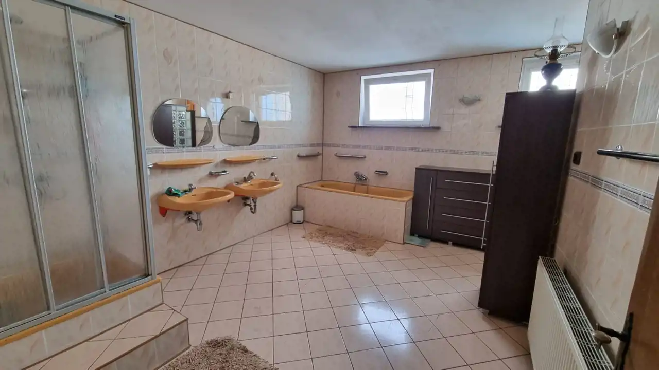 - rodzaj ogrzewania: piec na drewno. Ogrzewanie podłogowe w kuchni i łazience, w pozostałych pomieszczeniach kaloryfery