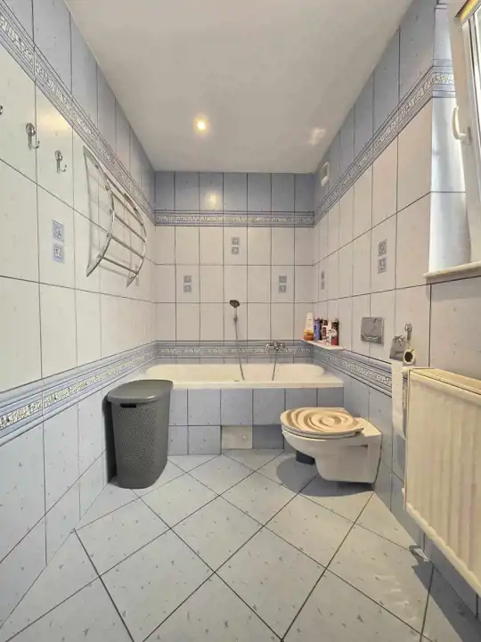 - Media Ogrzewanie: c. o. gazowe i węglowe; Woda: ciepła - piecyk gazowy; Kanalizacja: miejska; Prąd: jest; Gaz: jest