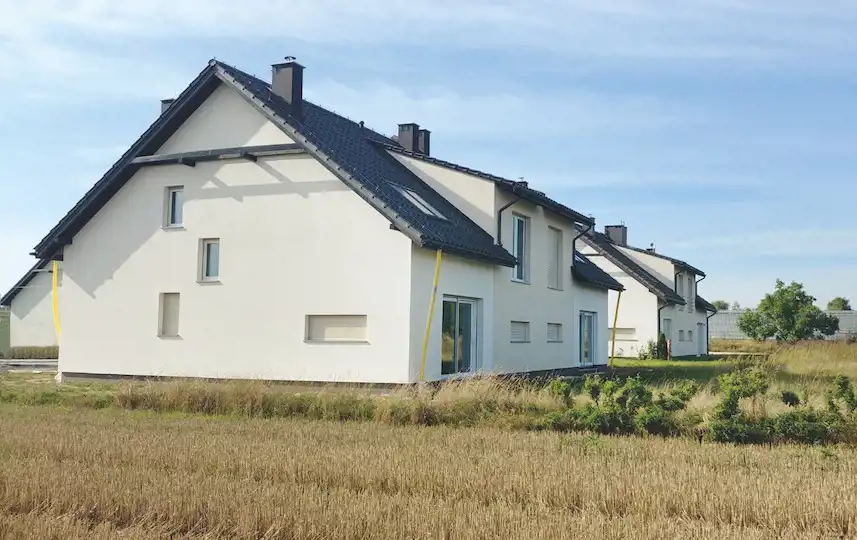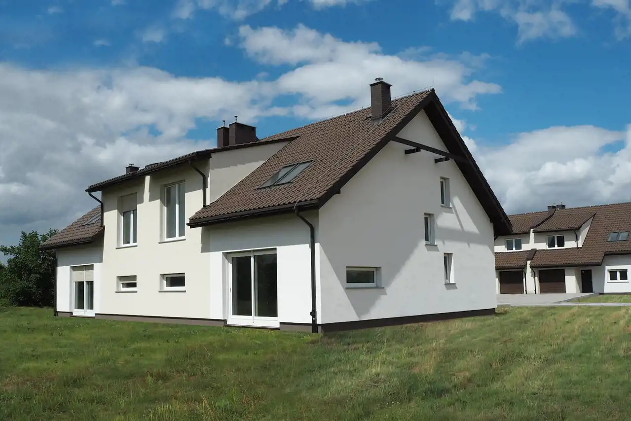 Budynki zostaną oddane w standardzie deweloperskim podwyższonym (zewnętrzne parapety granitowe, drzwi tarasowe w systemie HST, rolety zewnętrzne elektryczne, ocieplenie dachu -półsztywna pianka poliuretanowa Crossin Attic Soft Foam 20 cm).