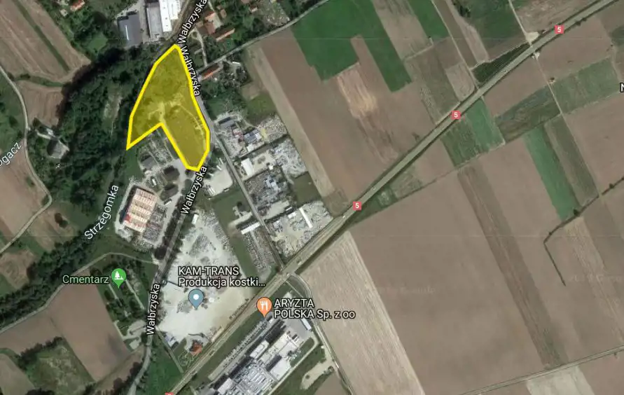 Oferowany teren inwestycyjny położony jest w południowo-zachodniej części Strzegomia, w granicach administracyjnych miasta, przy ulicy Wałbrzyskiej.