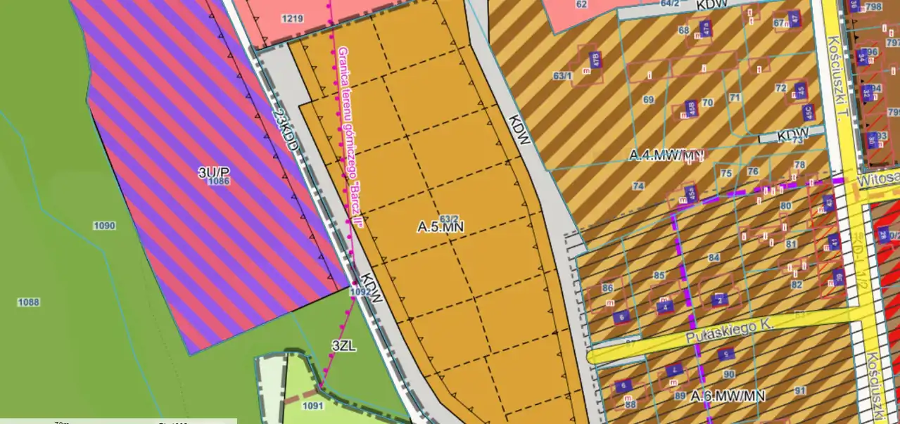 Do sprzedaży działki o pow. od 1134 m2 do 1296 m2 przeznaczone są w miejscowym planie zagospodarowania przestrzennego pod zabudowę mieszkaniową jednorodzinną (MN) z dopuszczoną funkcją usług.