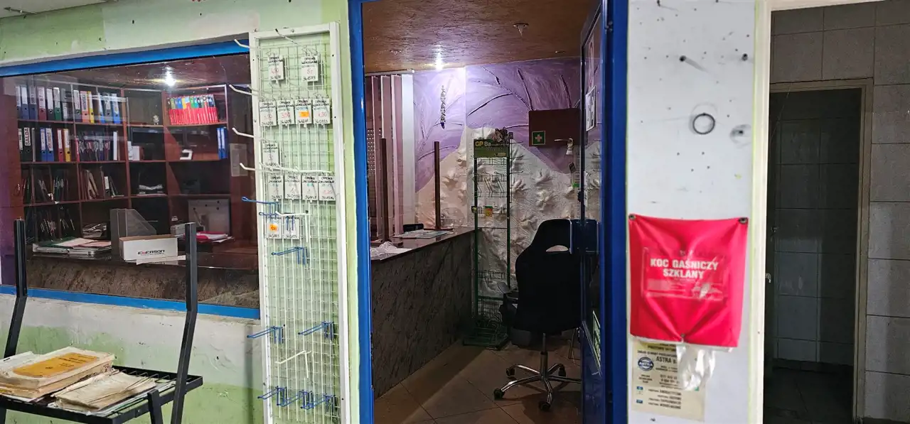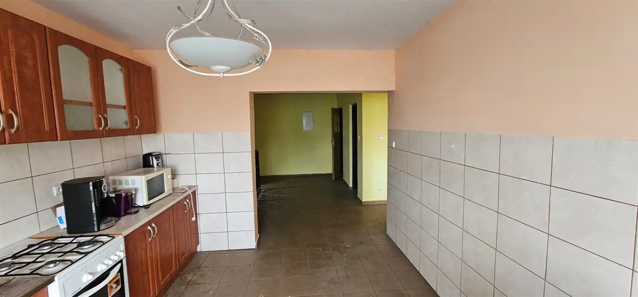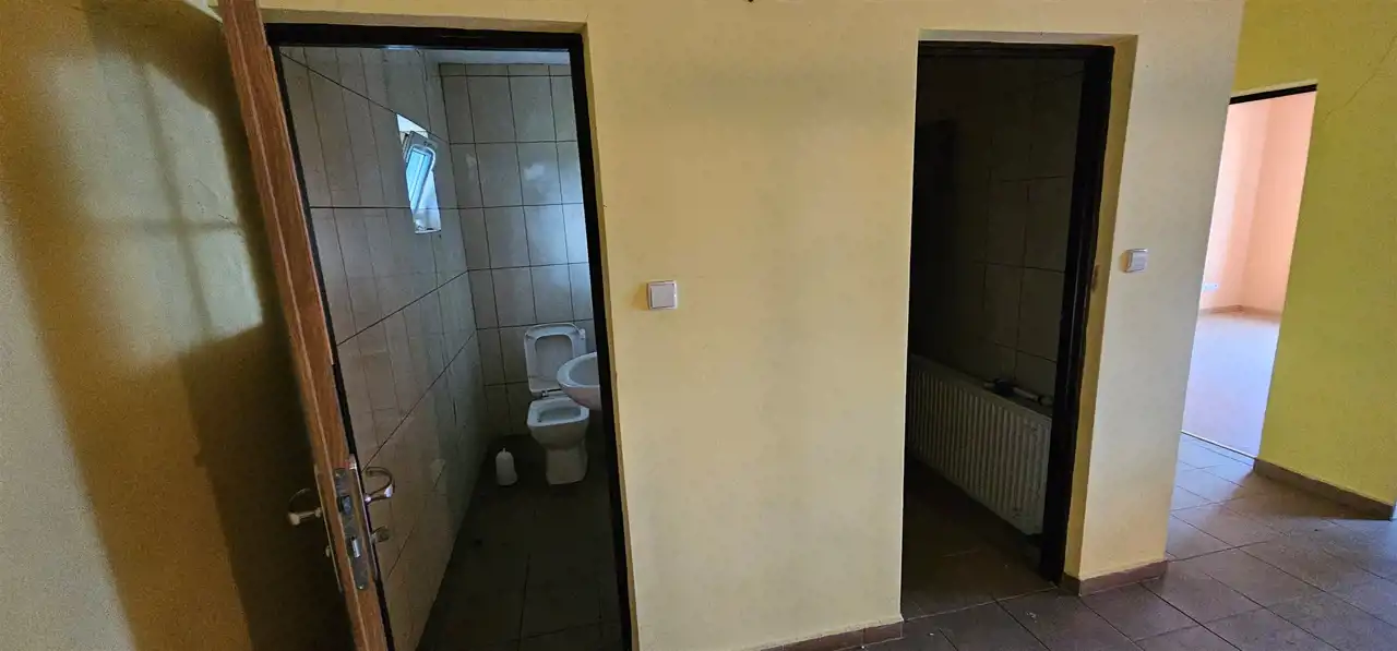 3. Budynek magazynowy z częścią socjalną (kuchnią oraz pomieszczeniami mieszkalno-socjalnymi) o pow. 229,95 m2 składający się z części magazynowej na parterze o pow. użytkowej 119 m2 oraz części socjalnej na piętrze o pow. 110,95 m2. Na pięrtrze znajdują się kcuhnia wykończona glazurą, łazienka, wc oraz pomieszczenia mieszkalne. Budynek wybudowany w 2004 roku w technologii tradycyjnej, strop typu WPS, dach o konstrukcji drewnianej kryty dachą trapezową. Posadzki pokryte gresem, okna PCV.