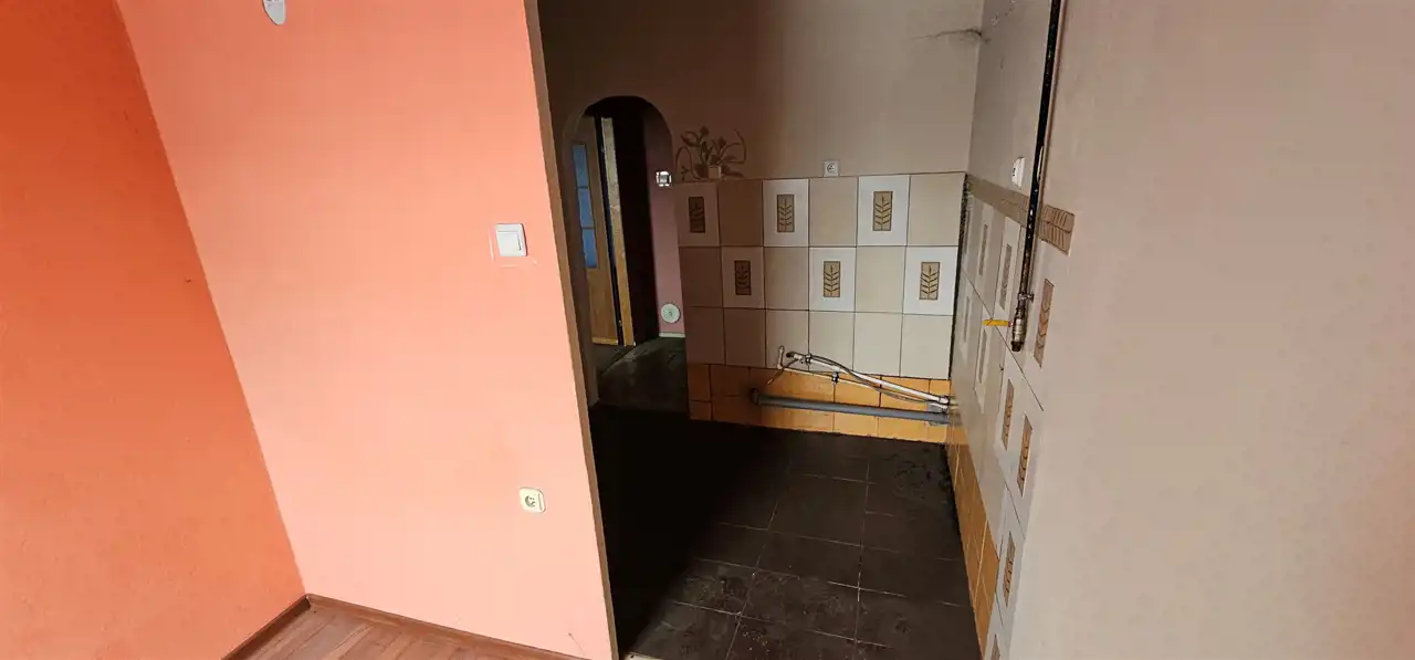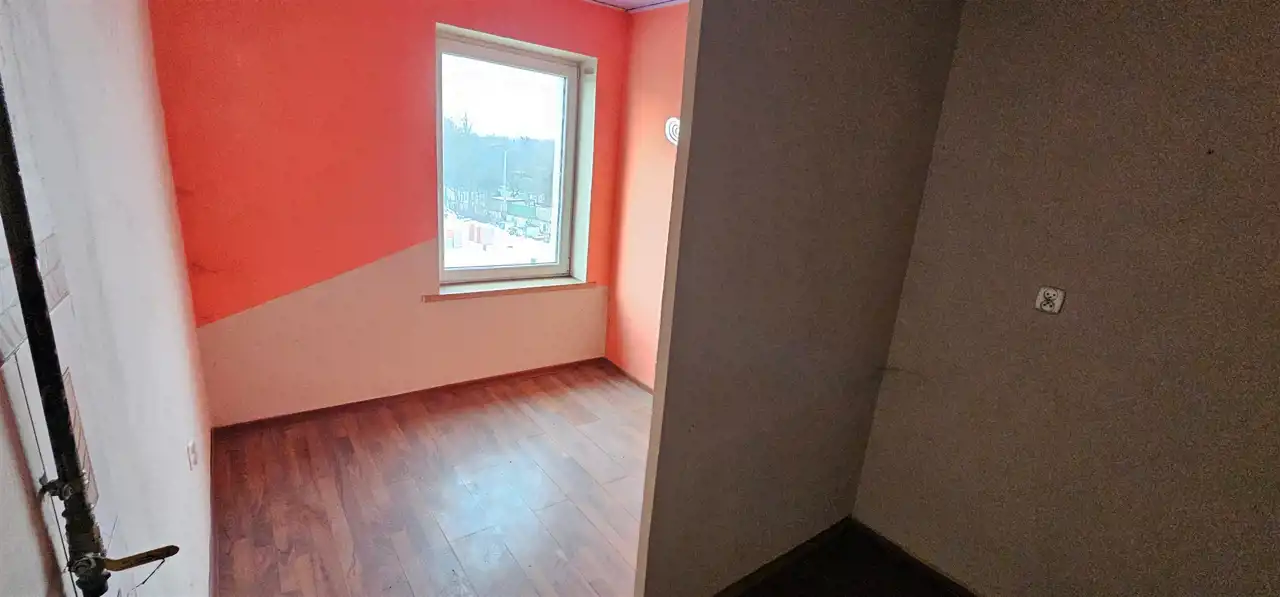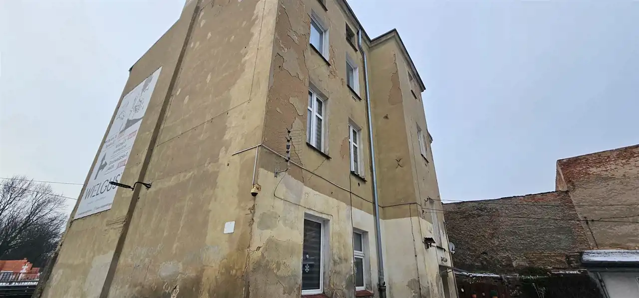 Mieszkanie dwupokojowe o pow. 34,80 m2 usytuowane na drugim piętrze kamienicy położonej w Strzegomiu. Mieszkanie wymaga generalnego remontu, pomieszczenia wykończone pokryte gładzią, okna PCV. W pokoju zamontowano piec kaflowy. Kuchnia, wykończona płytkami, możliwość podłączenia kuchenki gazowej. Za kuchnią znajduje się drugi niewielki pokój. Łazienka razem z wc, wyposażona w kabinę prysznicową, wykończona glazurą. Ogrzewanie piecowe. Do mieszkania przynależy piwnica o pow. 1,40 m2.