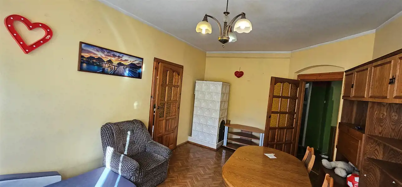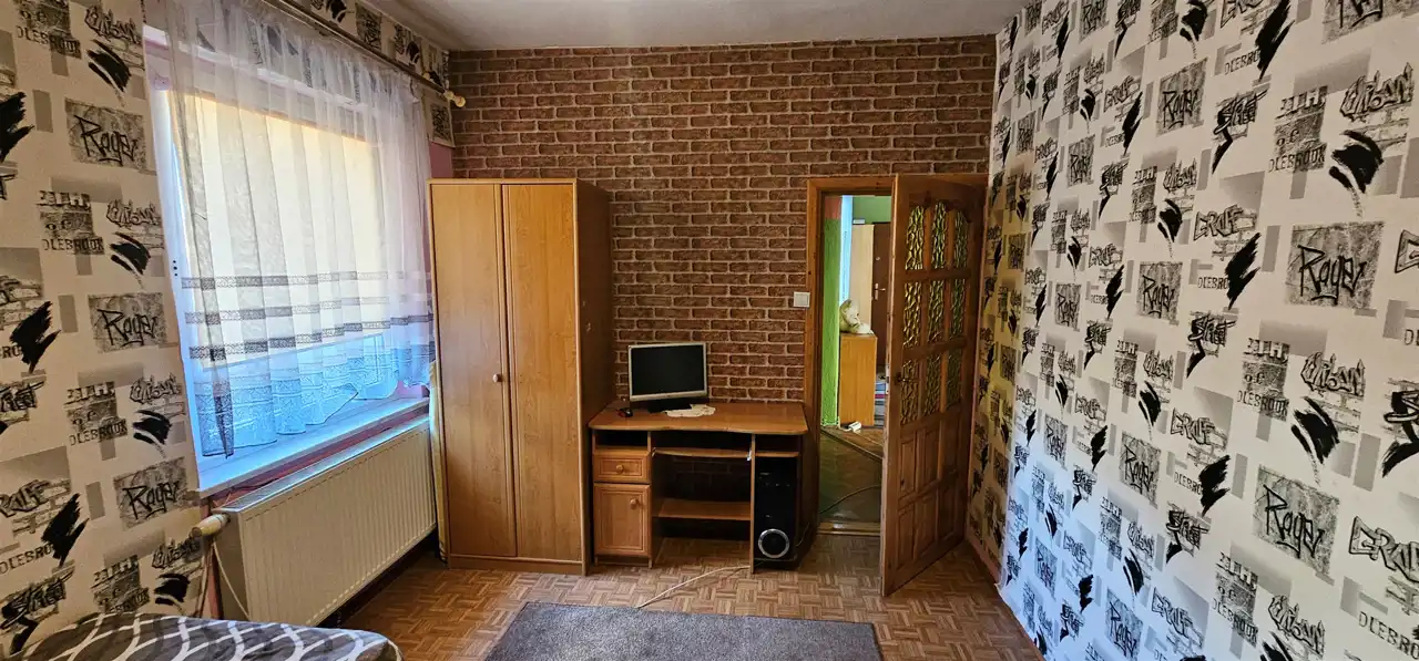 Przestronne, słoneczne mieszkanie dwupokojowe o pow. 52,20 m2 usytuowane na pierwszym piętrze nowo wyremontowanej kamienicy położonej blisko ośrodka zdrowia oraz sklepów handlowych w Strzegomiu. Mieszkanie wymaga remontu, pomieszczenia wykończone wykładziną, ściany pokryte gładzią oraz tapetą, okna PCV. W salonie ozdobny piec kaflowy. Duża, przestronna kuchnia, wykończona boazerią oraz płytkami. Łazienka razem z wc, z oknem, wyposażona w piec gazowy dwufunkcyjny do c.o. oraz kabinę prysznicową, wykończona glazurą. Ogrzewanie gazowe oraz dodatkowo piecowe. Do mieszkania przynależy piwnica. Budynek odrestaurowany i docieplony.